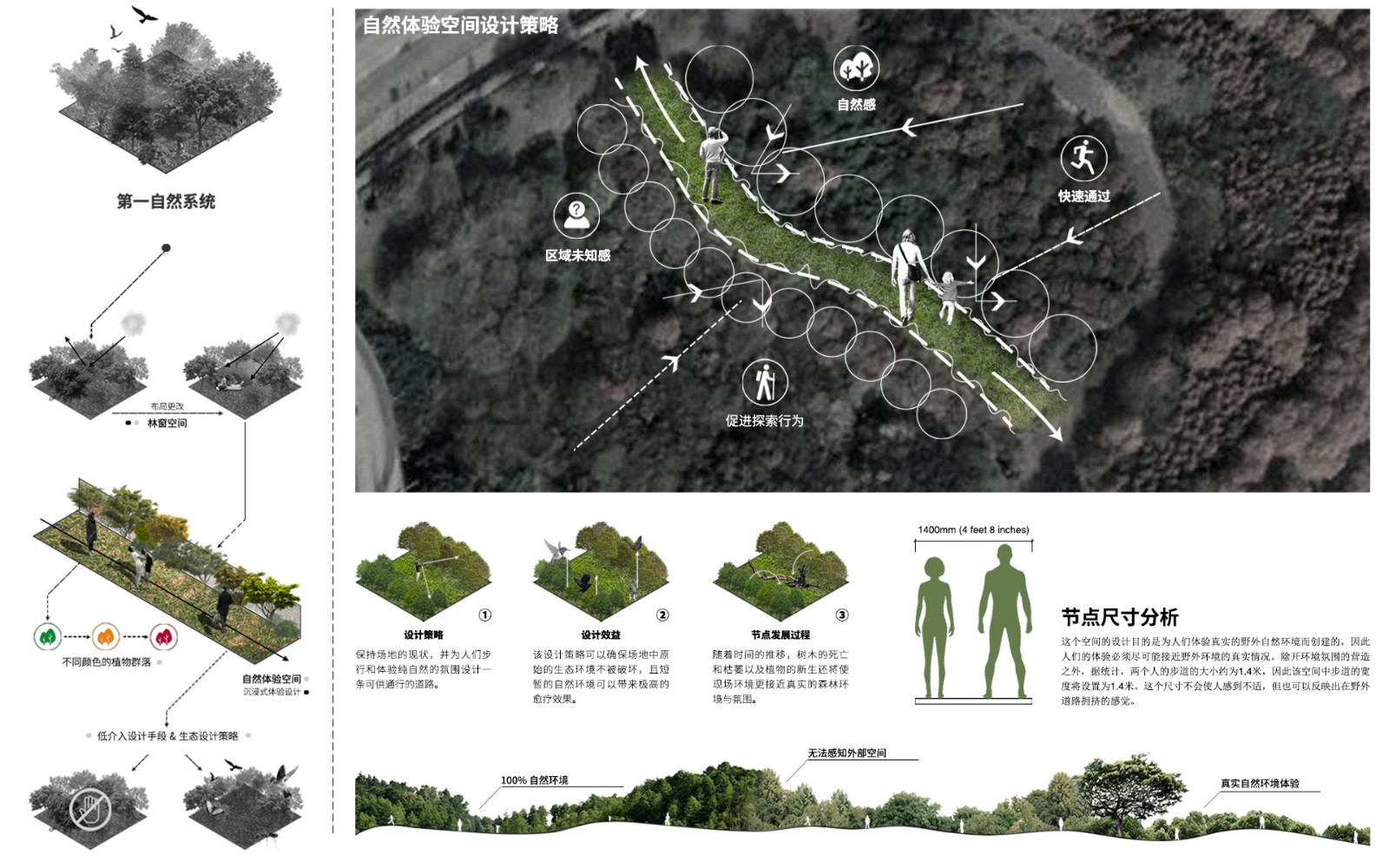 ▲第二個(gè)節(jié)點(diǎn)是自然體驗(yàn)空間。目的是創(chuàng)造一處純自然空間供人們體驗(yàn),激發(fā)人們對(duì)自然的好奇感與探索欲。