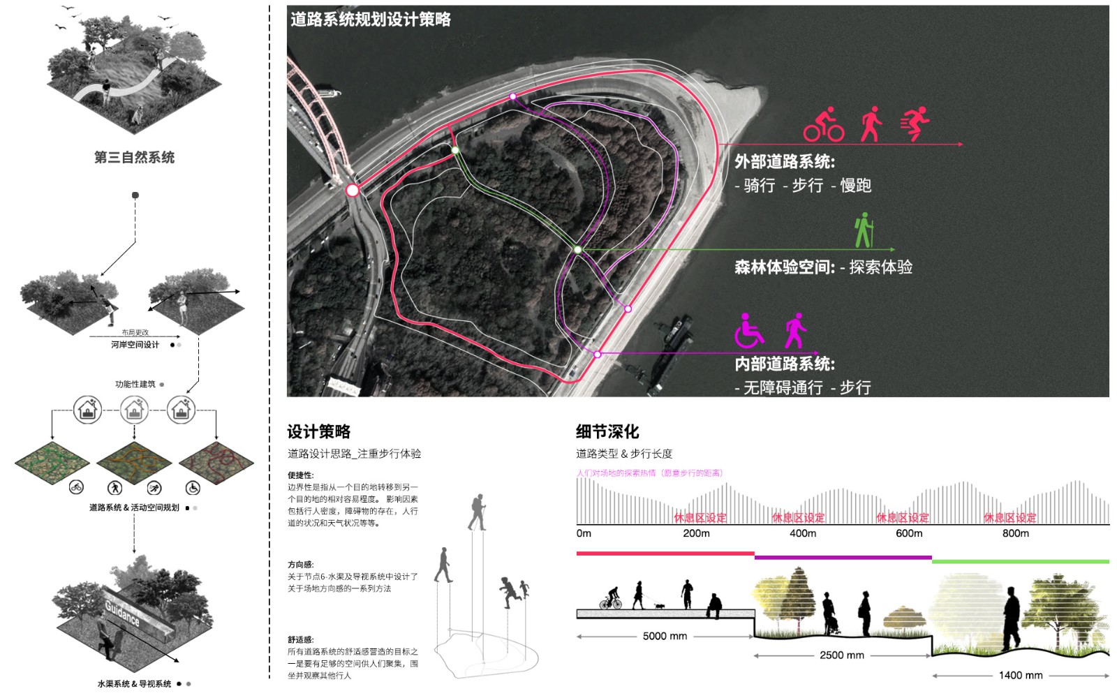 ▲第五個(gè)節(jié)點(diǎn)是道路系統(tǒng),目的是創(chuàng)造一系列舒適的,有秩序的道路系統(tǒng),并為不同的人群服務(wù)。