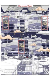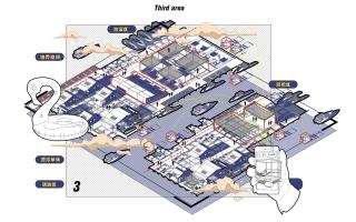 ▲第三片區(qū)主要為體驗(yàn)空間。主要植入大型活動(dòng)區(qū)以及漂浮單體,融合內(nèi)部空間,連接外界空間。