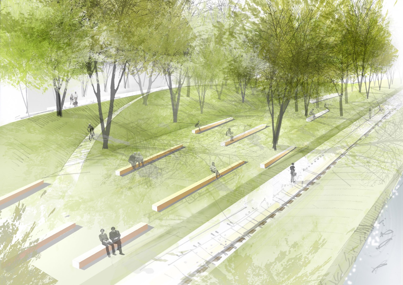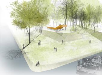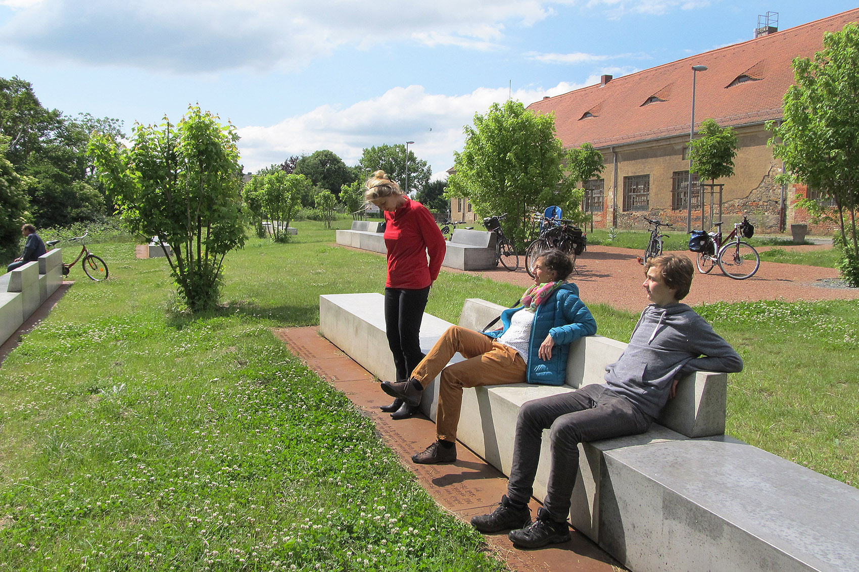 帶狀公園緊鄰薩克森州立研究所。公園設置了大量長椅方便工作人員午間休憩。據研究,散步可以提高腦力勞動的效率,由此我們特意設置了長長的沿河步道。