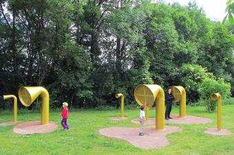 ▲喇叭通過蜿蜒的管道相連,形成聲音的迷宮, the horns are connected by winding pipes, forming a maze of sound ? REHWALDT LANDSCAPE ARCHITECTS