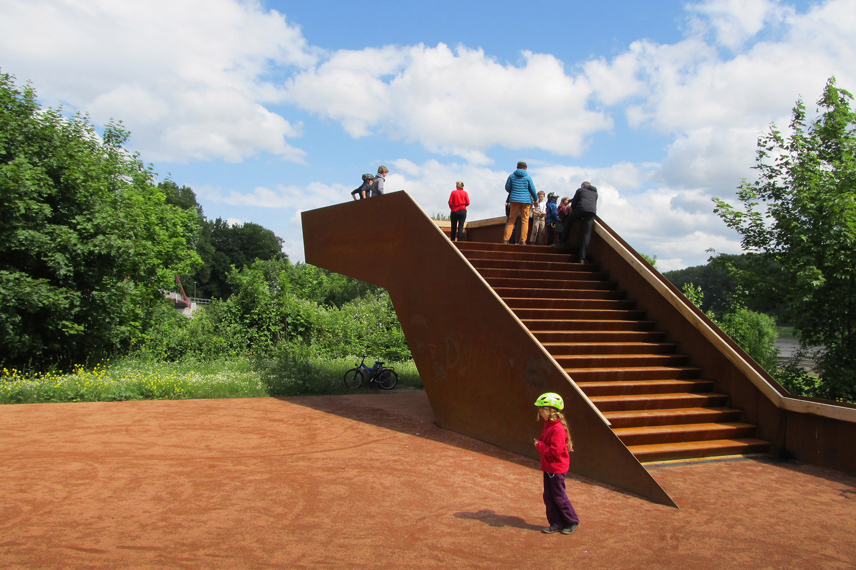 里薩是易北河上的第二大內陸港口,鋼鐵制造業(yè)發(fā)達,被稱為 “鋼鐵之城”。工業(yè)鐵路系統搬遷后,市政府希望修復受損的自然環(huán)境,同時將綠帶“易北線”發(fā)展成面向大眾的文旅項目。新的橋梁連接城市南北,易北河畔的開放空間得到了合理的再利用,實現可持續(xù)發(fā)展。為了突顯城市文化氣質,該項目使用了各種鋼材作為節(jié)點的主要材料,延續(xù)了“鋼鐵之城”的歷史。