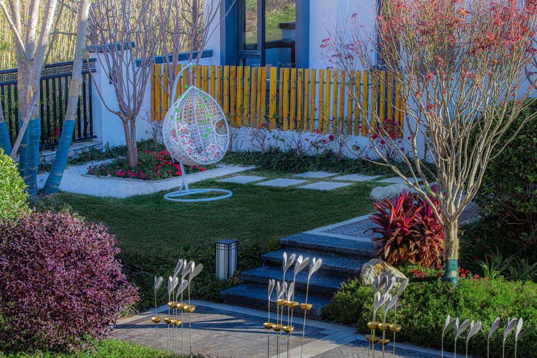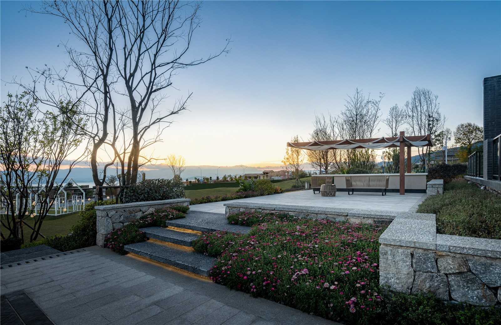 同時,在戶外草坪區(qū)通過植物的有機(jī)組合營造度假氛圍感。院內(nèi)遮陽篷也根據(jù)視線分析做了合理的高度設(shè)計(jì),使居住者不管在室內(nèi)、室外,都能享有最大限度的觀景視野而不被任何物體所遮擋。