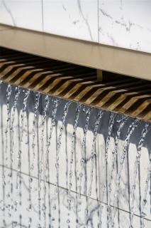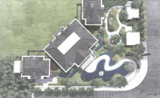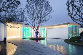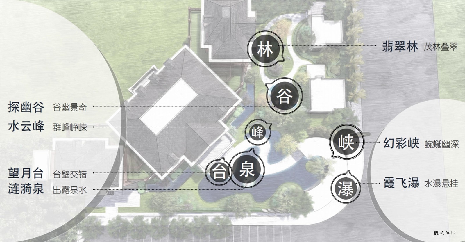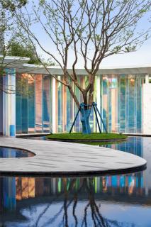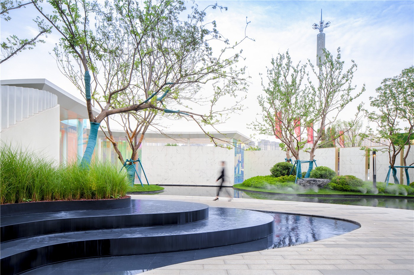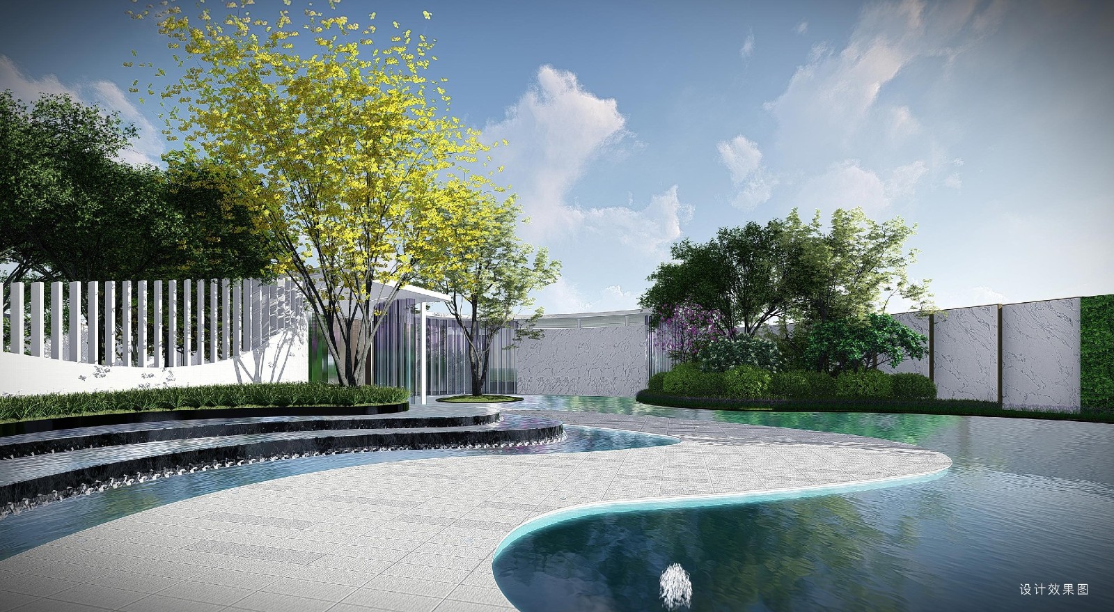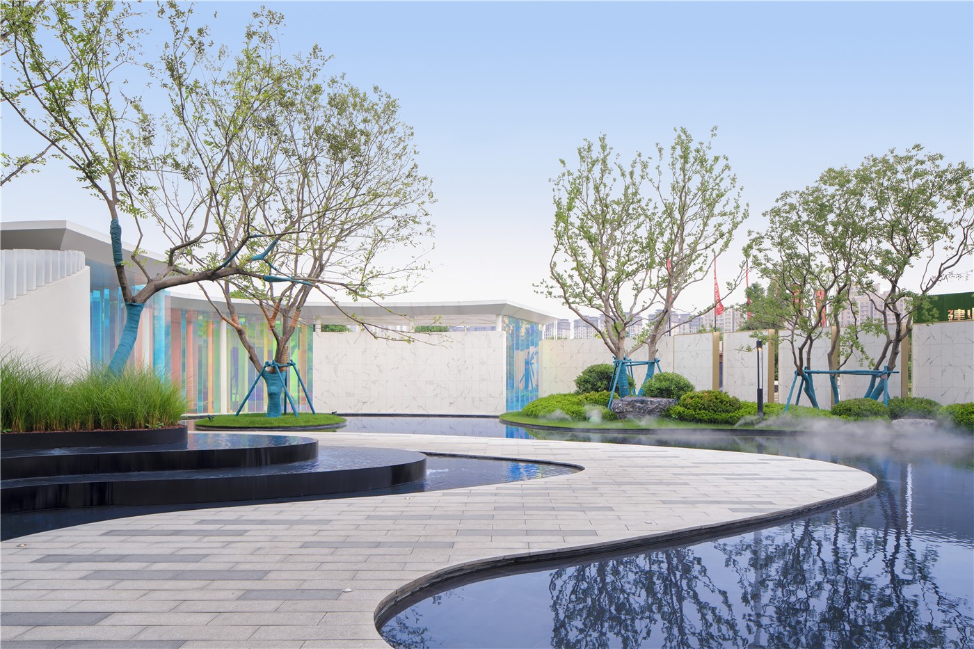 踏過(guò)微波,穿過(guò)舒影斑斕,低矮的草木隨風(fēng)搖曳。通過(guò)水聲的吸引,移步于此,形成從喧鬧到靜謐的過(guò)度。再看水影相映成趣,悠然靜謐,打造自然親和、恬靜飄逸、風(fēng)雅悠然的生活氛圍。