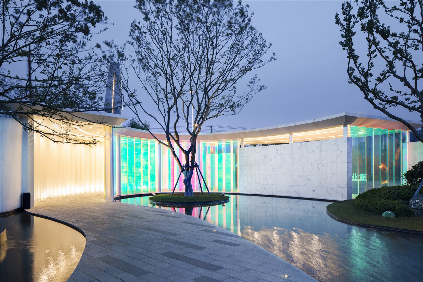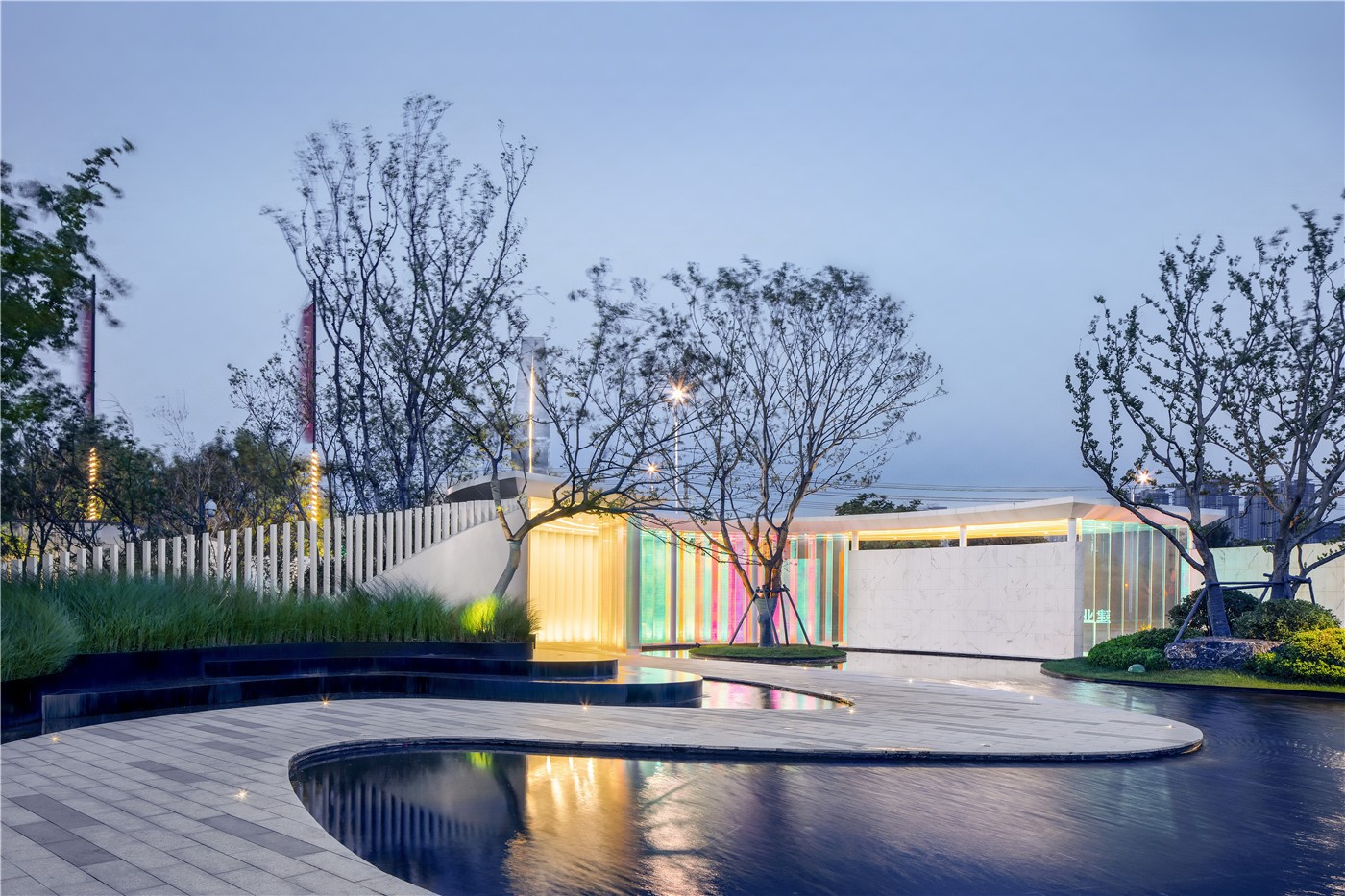門樓的弧形設(shè)計(jì)元素,簡(jiǎn)潔明朗,暗示無(wú)限內(nèi)涵;作為整個(gè)場(chǎng)所的核心空間,動(dòng)態(tài)曲線設(shè)計(jì),打破常規(guī)邊界,延伸的不止是建筑形態(tài),而是生活的詩(shī)意美好。