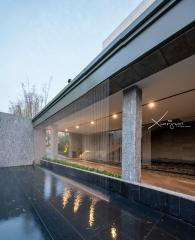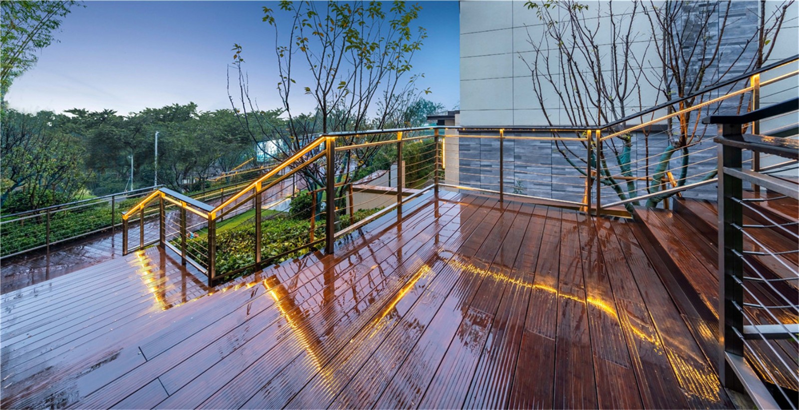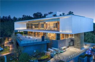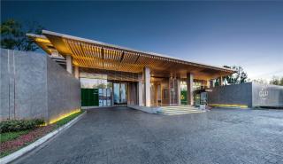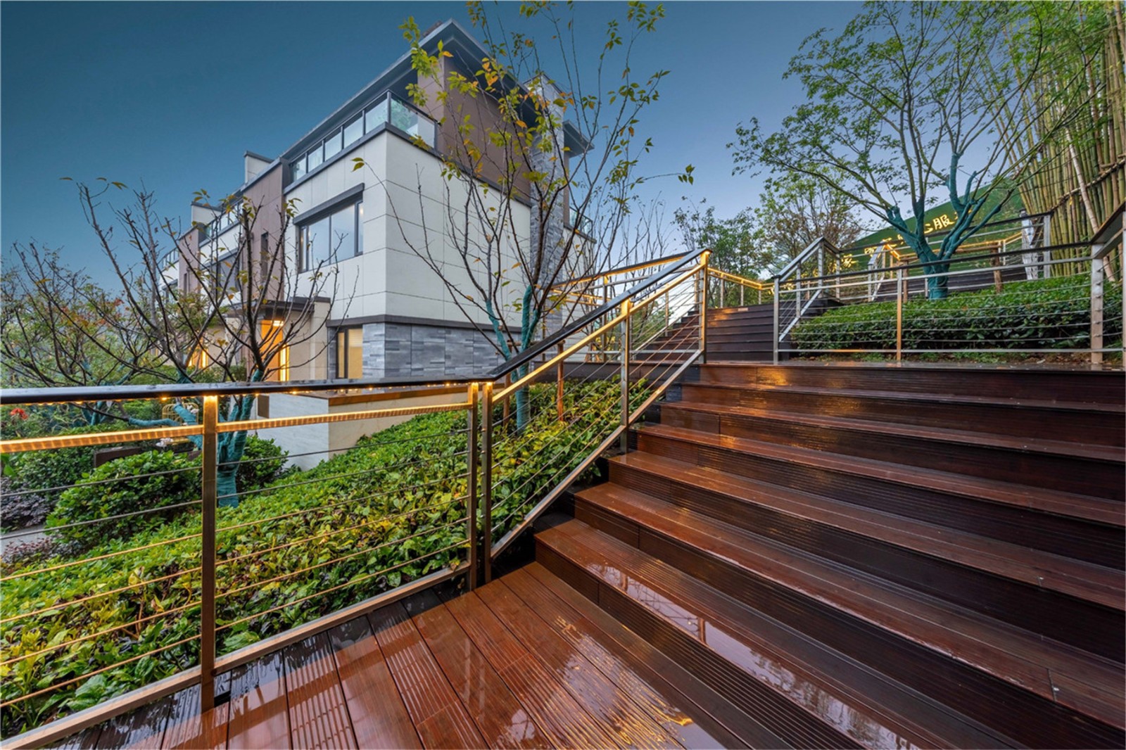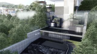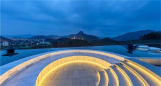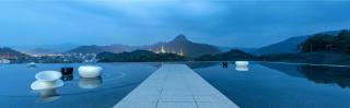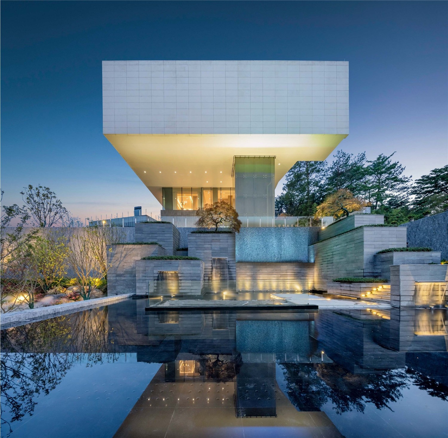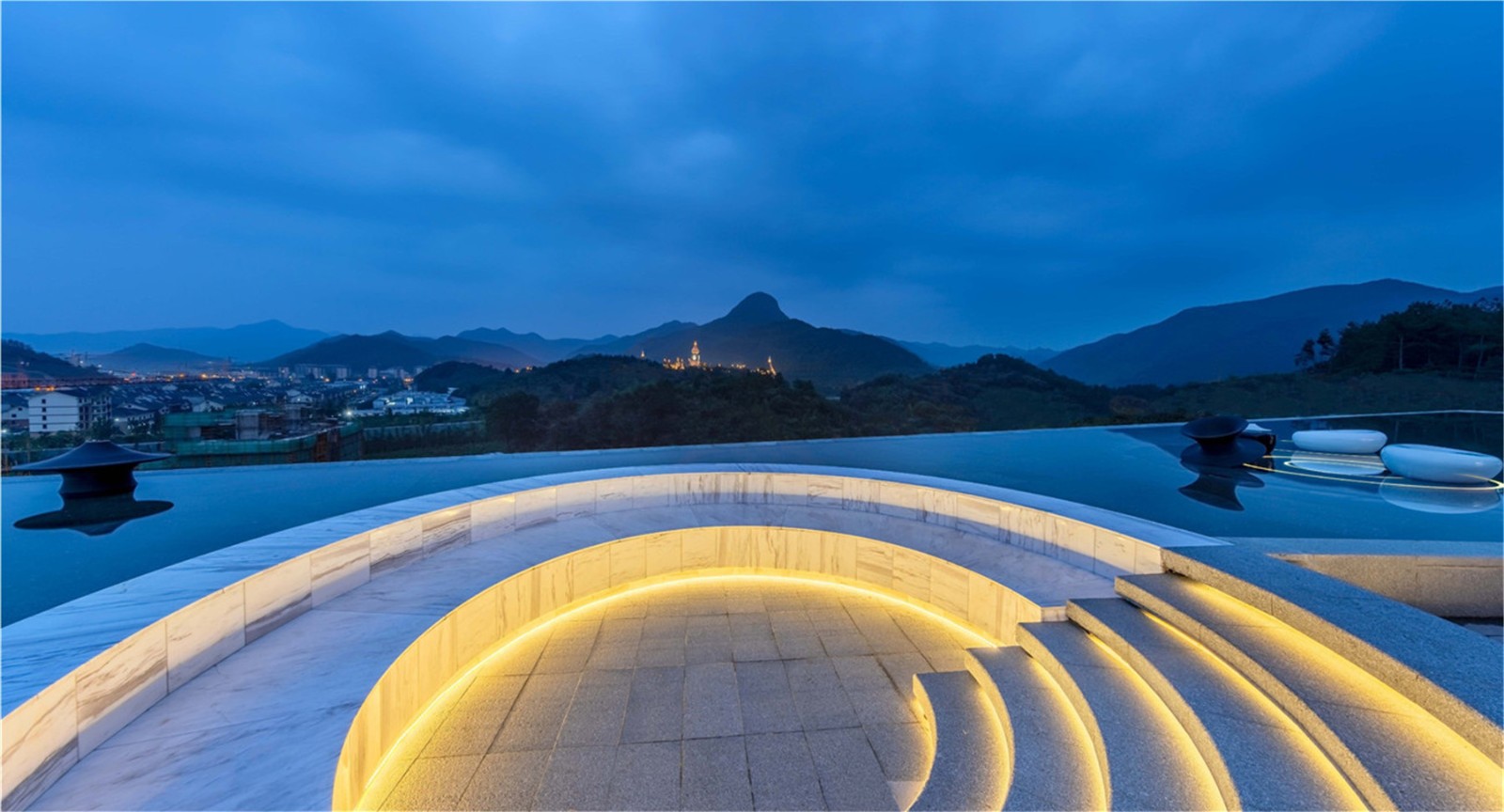 接待空間形成獨(dú)特的靜謐之所,平臺(tái)寬敞,池水曠朗清澈,可靜聽水聲潺潺。小坐其中,四周山光水影,盡收眼底。