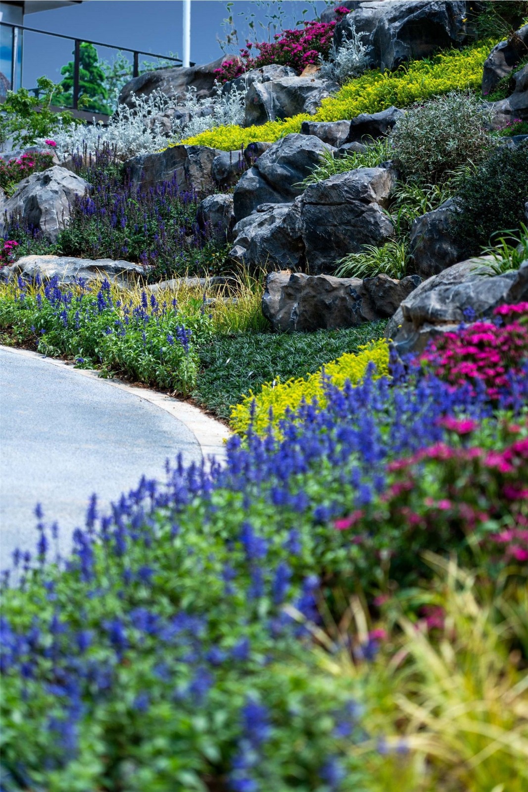 遠(yuǎn)看云霧相依,重山疊翠;近看芳草鮮美、落英繽紛。漫步于此,在繁華的城市生活中體驗(yàn)人與自然的融合。