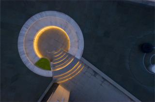 華光出現(xiàn),靜謐的水,優(yōu)雅而不失嚴(yán)肅的門與佇立在門兩旁的竹相伴,是為迎接。