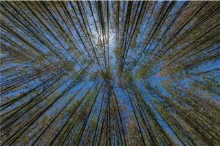林深徑幽,天地寥廓;飛鳥掠過樹梢,啾啾細(xì)鳴,回繞林間,打通喧囂與寧靜的聯(lián)結(jié)。