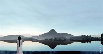云霧之中若隱若現(xiàn)的遠(yuǎn)山,正是詩意的回歸。水波粼粼,宛若飛虹,一幅生動(dòng)的山水畫卷正徐徐展開。