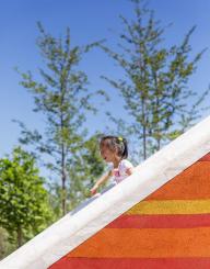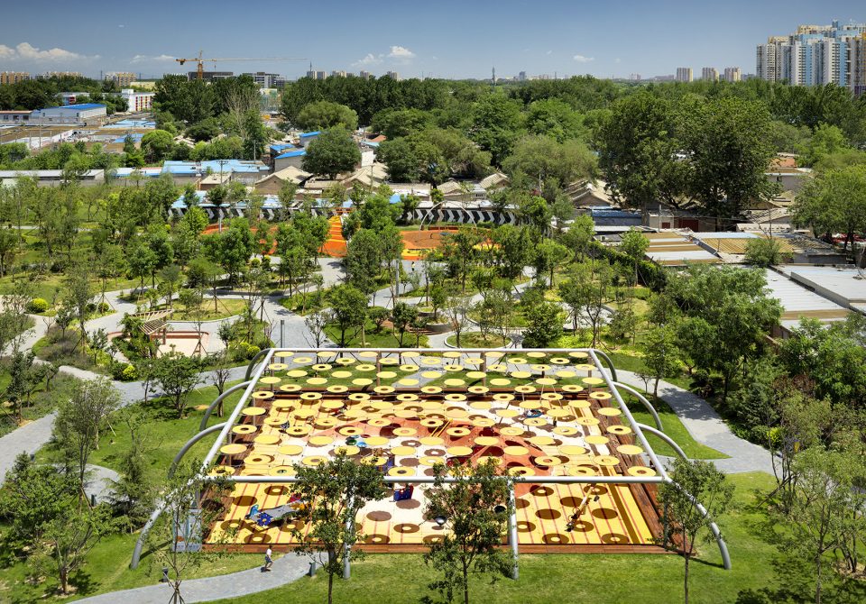 The Indigo Playgrounds are set within a public-private park adjacent the Indigo mixed-use complex containing office space, retail, food and beverage, a winter garden, and the East Hotel in Beijing’s northeast Jiuxianqaio sub-district. The two unique playgrounds are entirely separated, designed for the needs of different age groups.