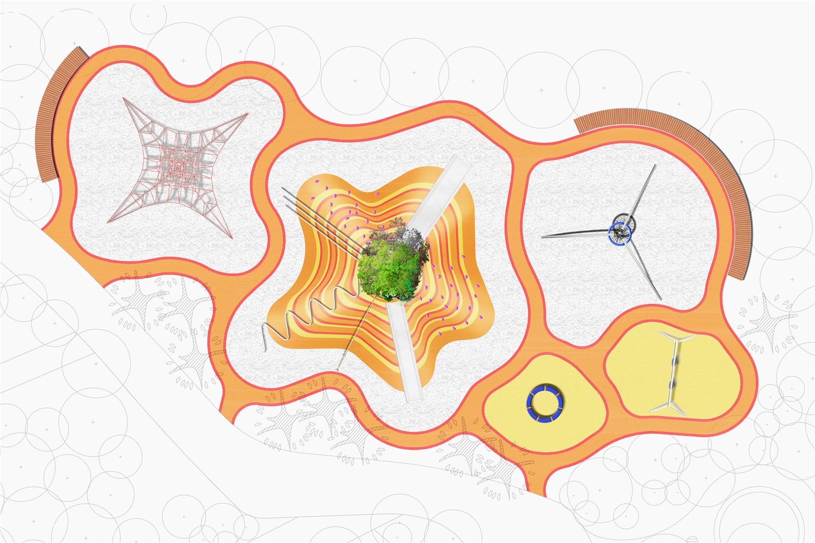 我們歡迎更多熱愛冒險的孩子們進一步深入公園,進入“王者之山”游樂場。顧名思義,這個游樂場的中心是一座令人興奮的山峰。為了讓孩子們到達夢寐以求的峰頂,一排排爬桿,攀巖抓手和攀登繩為孩子們提供了一系列的挑戰(zhàn)。山頂上巢狀的瞭望臺是一個勝利者( Acer truncatum)之家,也是這座山真正的國王的終點。豪華的白色大理石滑梯是游戲參與者下山的快速路線。 除了“王者之山”之外,游樂場還包括旋轉(zhuǎn)飛翼秋千、螺旋平衡木和一個攀爬架。為了使整個空間更加完美,山腳下和樹冠上的霧氣系統(tǒng)形成了涼爽的蒸汽云。