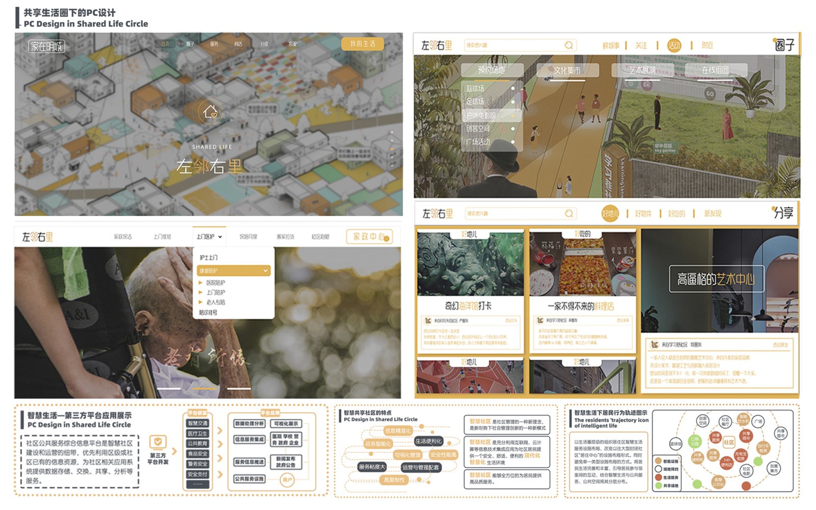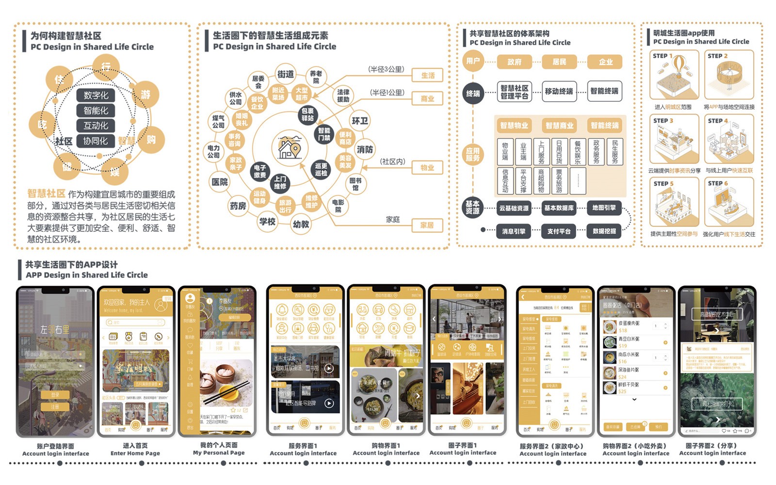 以共享平臺(tái)將明城區(qū)公共服務(wù)設(shè)施通過(guò)智慧化的整合聯(lián)系,將居民生活完善和豐富,引導(dǎo)居民參與部里間的互動(dòng),結(jié)合智慧生活與公共服務(wù)、公共空間將其分層分布。為社區(qū)居民的“吃、住、行、游、康、娛、購(gòu)”生活七大要素,提供了更加全方位、智慧化、互動(dòng)化且安全便捷的城市生活環(huán)境。
