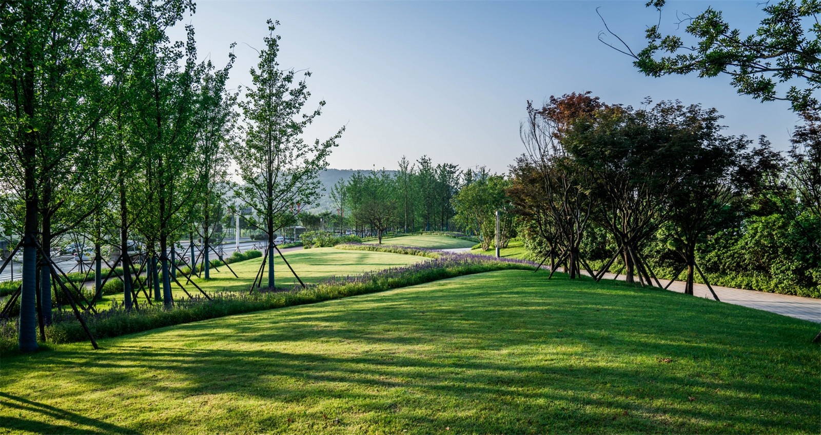 本項目結合鵝羊山一并打造了一處背山面水的新興城市門戶濱水景觀。在現代生活快節(jié)奏的基調下,提倡更健康、更優(yōu)質的城市生活;在追求獨特個性與吸引力的同時,承載著孕育新市民文化的歷史新使命。