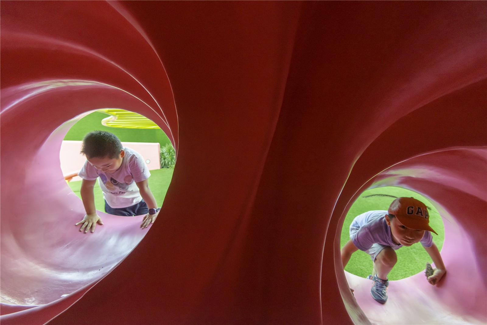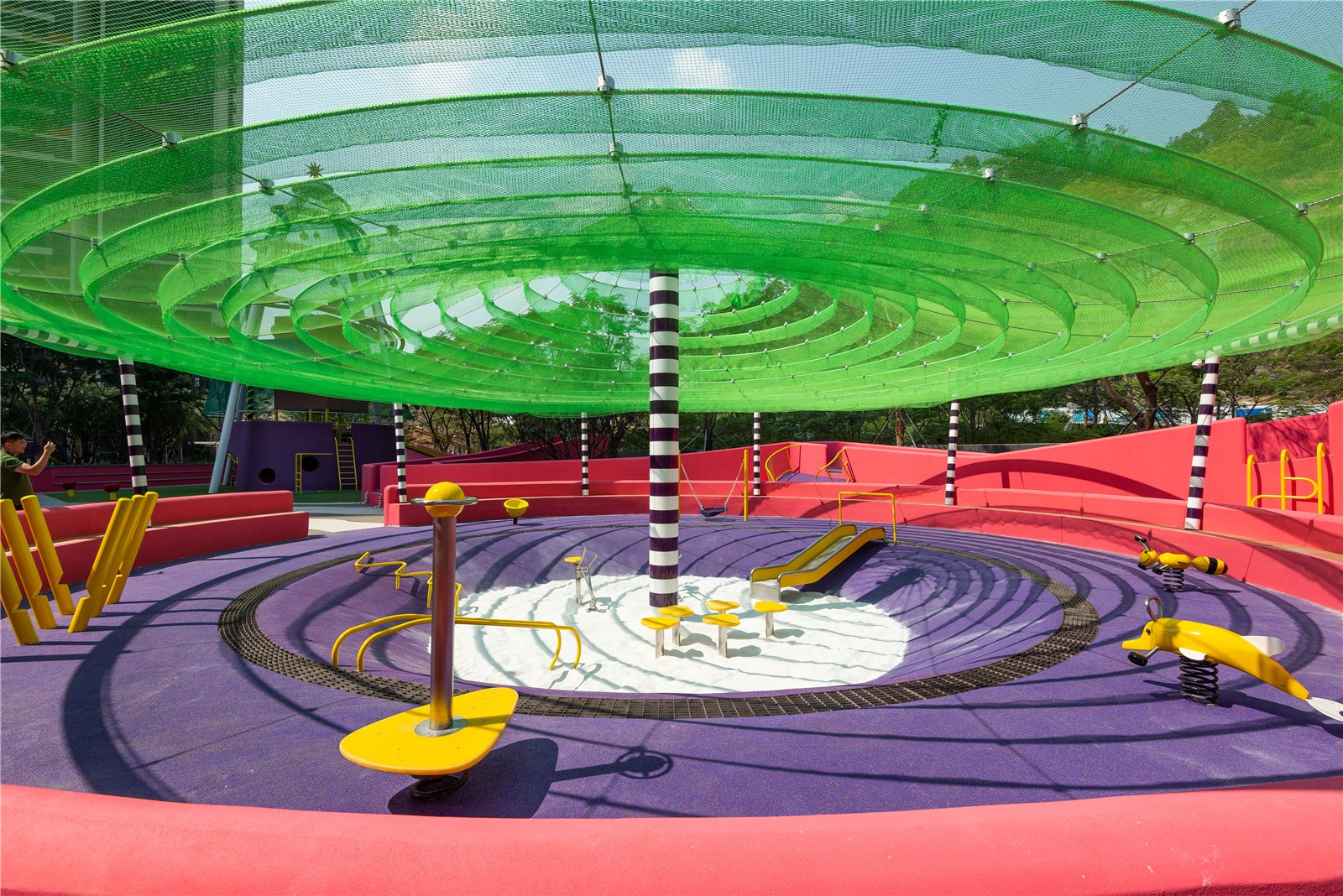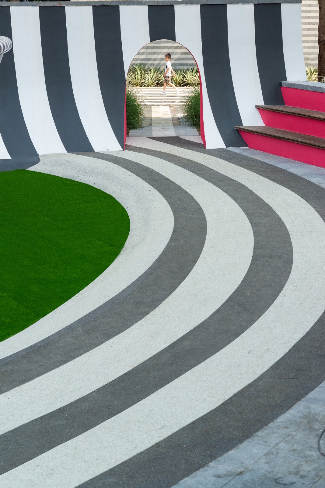 位于項(xiàng)目中心的游樂場(chǎng)的不僅是深圳這個(gè)城市的實(shí)驗(yàn)性質(zhì)的證明,也是深圳居民的實(shí)驗(yàn)性質(zhì)的證明。這種由植物、圖案、色彩和材料構(gòu)成的爆炸性的姿態(tài),如此迅速地被文化所吸收,成為常見的、典型的,甚至是通用的,這就是深圳進(jìn)步的本質(zhì)和面向未來的快速發(fā)展的真實(shí)證明。