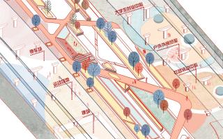 后期分析:將學(xué)校、小區(qū)的功能進(jìn)行引入,引入到高架橋下,將高架橋的墻體在不破壞承重結(jié)構(gòu)的基礎(chǔ)上進(jìn)行打開,實(shí)現(xiàn)真正的場地可達(dá)性和聯(lián)系性。