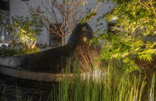 Using silhouettes to create a growing freehand brushwork. By means of light and curtain, the plant community is transformed into a traditional Chinese painting scene. The installation combines the effects of day and night, reflecting the theme of the river in the painting.