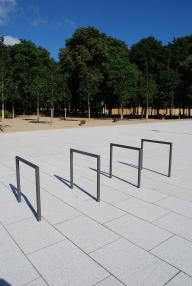 東面通道以平整大氣的石板鋪裝為主,配以自行車(chē)架等各種出行配套設(shè)施。該區(qū)域靠近建筑群開(kāi)闊處,適合設(shè)置露天咖啡廳等戶(hù)外設(shè)施。