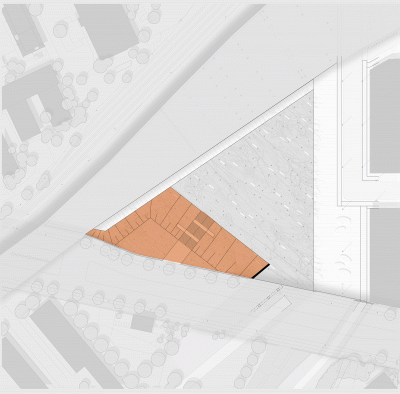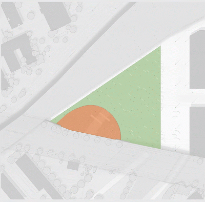 The entire site is triangular, which is a relatively regular and concise geometric shape. In order to maintain the unity of the shape, the shape of the hillside is finally determined as the simplest semicircle.