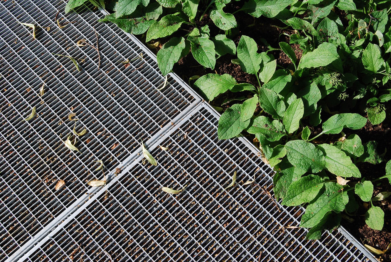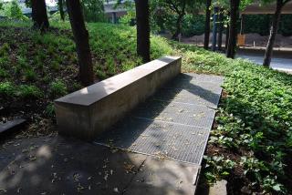 階梯上設(shè)有兩處座椅。它們更好地融合著階梯與山坡,也提供了居高臨下駐足欣賞場(chǎng)地的機(jī)會(huì)。場(chǎng)地中雨水平衡的設(shè)計(jì)貫穿始終。階梯上的平臺(tái)踏腳處使用了金屬網(wǎng),方便雨水滲入,提高了場(chǎng)地內(nèi)雨水的消化率。