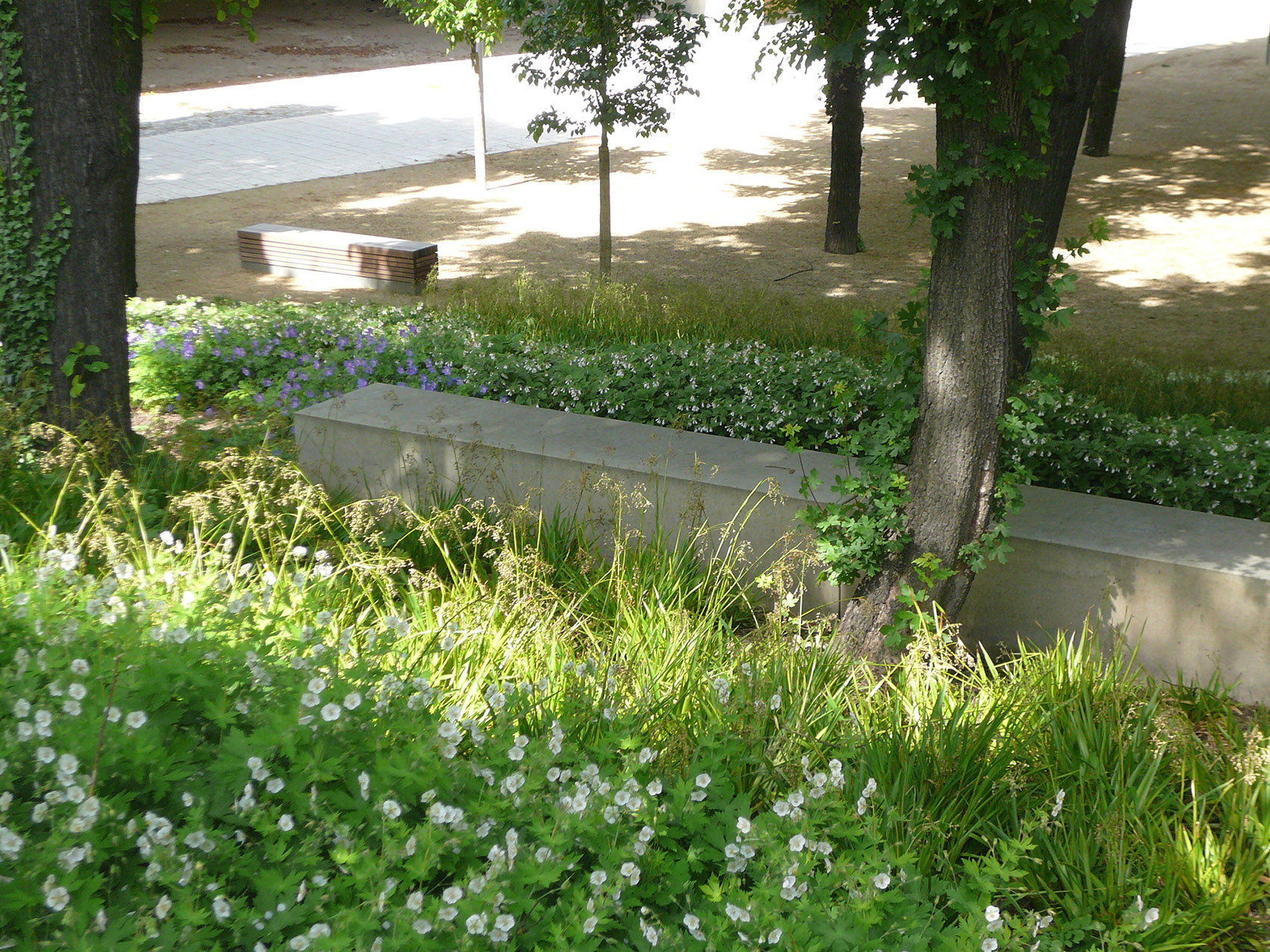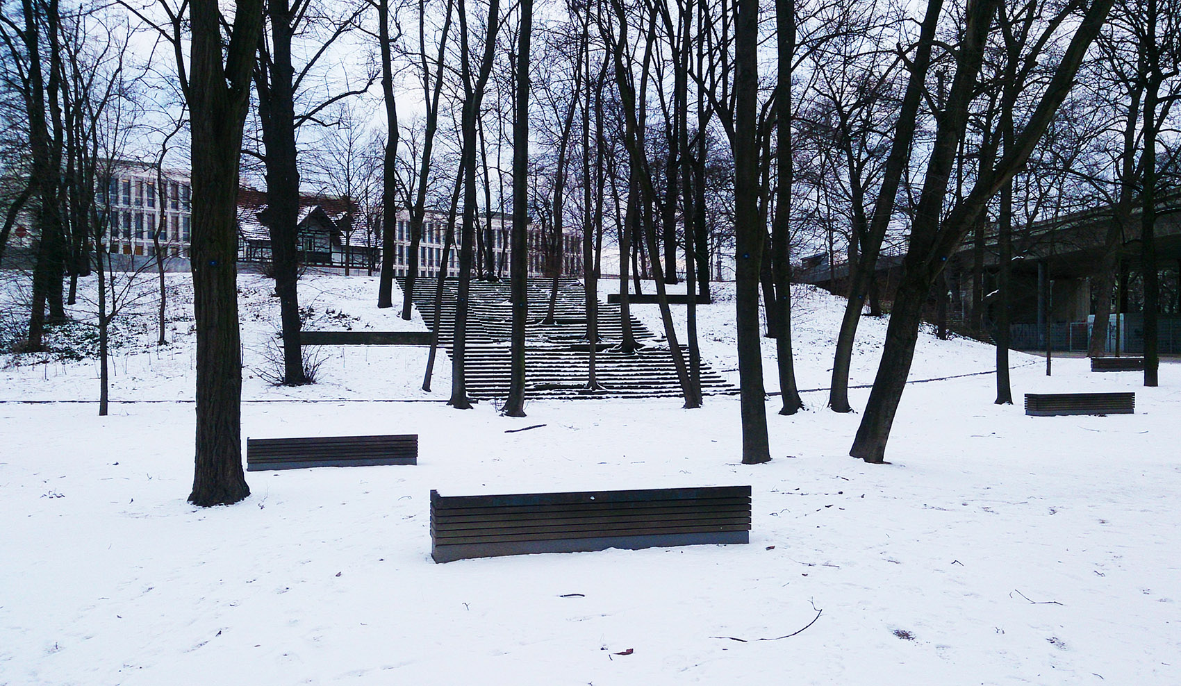 ULAP (Universum-Landes-Ausstellungspark) 世界博覽會(huì)展館原名世界博覽會(huì)展館。這里曾經(jīng)展出過(guò)世界最大的飛行器Dornier DoX。二戰(zhàn)中展館被炸毀,留下開(kāi)闊的場(chǎng)地。此后植被自由生長(zhǎng),成為城市中難得的一片綠地。場(chǎng)地位于柏林中心區(qū)最繁華的地段。當(dāng)時(shí)柏林主火車(chē)站即將完工,本就南靠德國(guó)聯(lián)邦國(guó)務(wù)部的場(chǎng)地,進(jìn)一步成為通行要地。柏林發(fā)展局以“廣場(chǎng)”為題征集設(shè)計(jì)方案,強(qiáng)調(diào)提高其通行性。