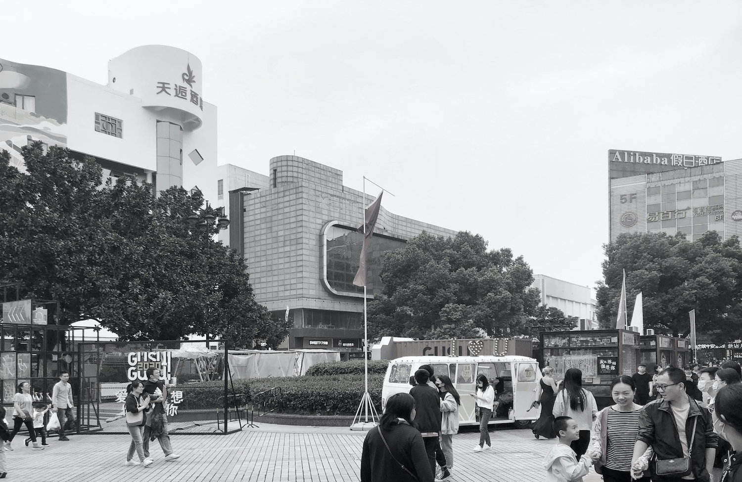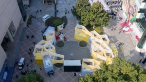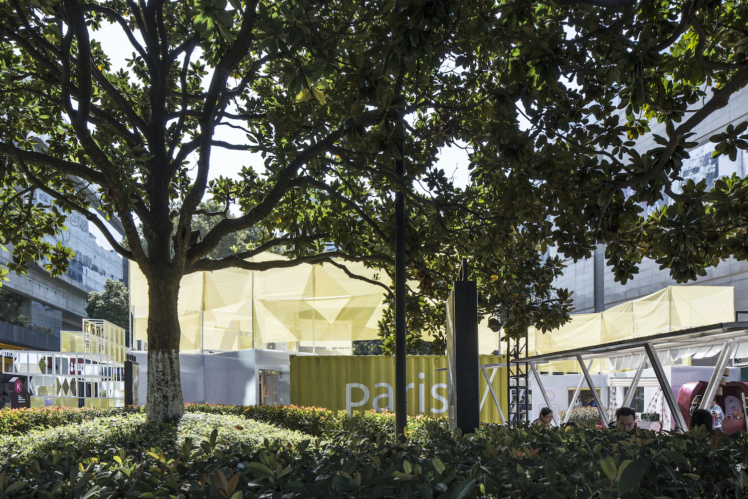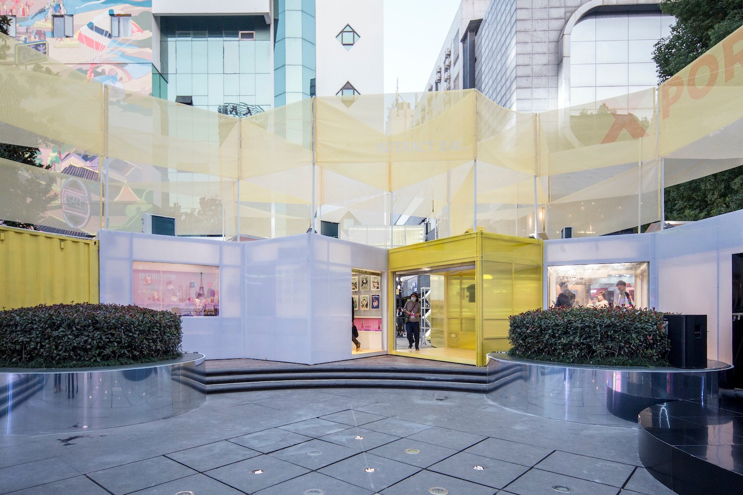 XPORT is located at Guanqian Street in Gusu District, Suzhou, the centre of the old quarter. Compared with other parks in Suzhou, although this pocket park’s volume and content are not outstanding, this small plaza-sized place is surrounded by opera houses, bookstores, theatres, People’s mall and other public buildings, which lead this little place be well known since the 20s’ last century. This year, the pocket park was transferred into a pop-up bazaar that stimulated the high-street in old town by inserting programmed containers. Recently, taking advantage of Suzhou International Design Week, this pocket park is once again empowered by design, with a new label and presence.