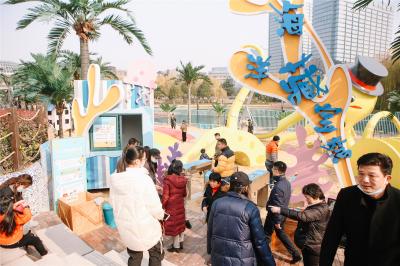 通過海底動物與藏寶地元素融入,在商業(yè)氛圍濃郁的場所內(nèi)打造了一處充滿自然海洋氣息的新消費休閑場景,用戶可以在此享受愜意的親子互動時光。