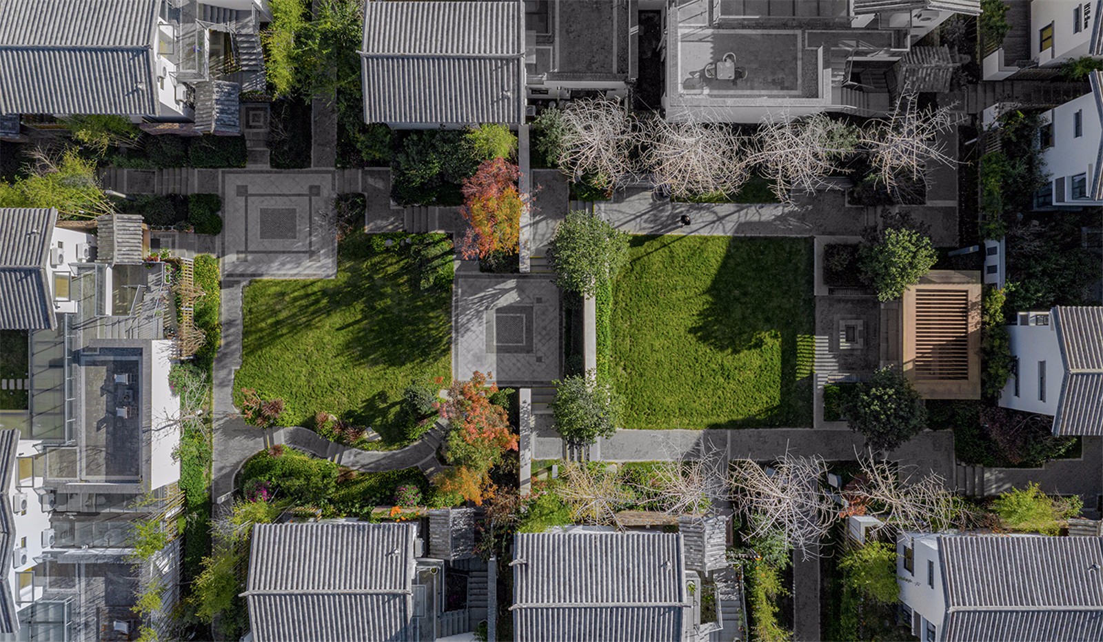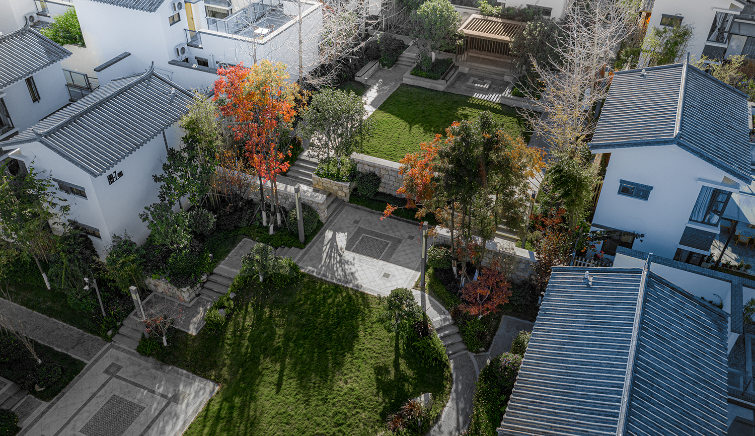 景觀在建筑的營造基礎上,結(jié)合大理街、巷、坊、院、場等構成元素的組成方式,力求規(guī)劃、建筑、景觀有機融合與互動,營建依托自然與人文的度假文旅生活方式。