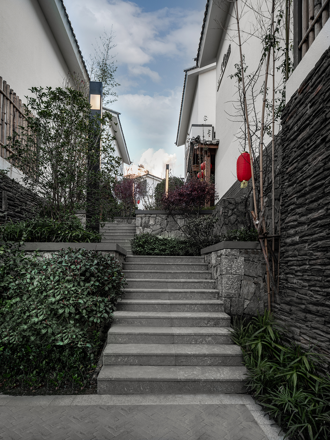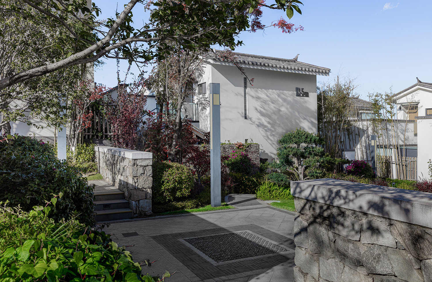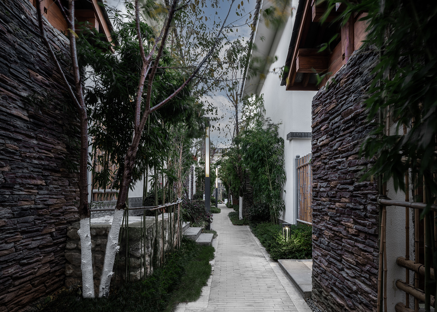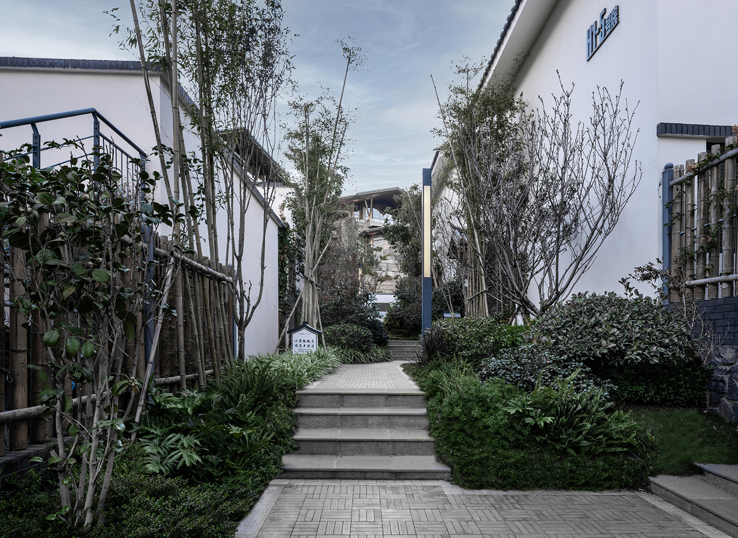 踏上青石板,穿過竹林花海悠長小徑,落在屋檐下的是又一處靜寧。