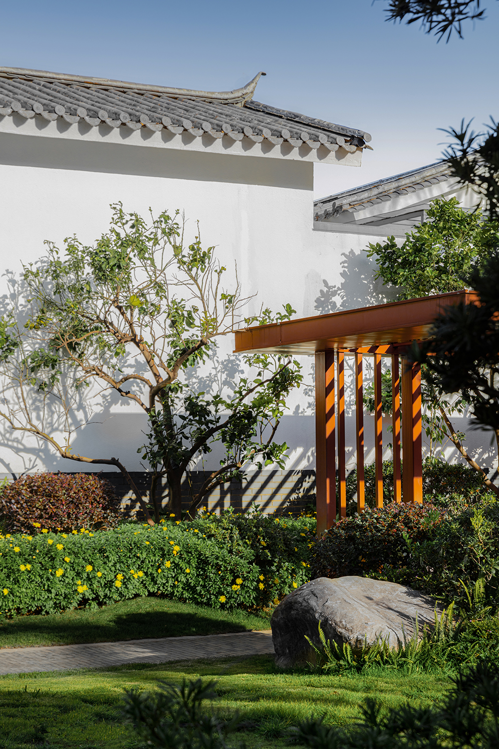 行道樹外是古韻,街巷道里是自然,小院里是生活。在時代洪流中被留下的民族印記,被今時的房屋、建筑結(jié)構、景觀營造再次呈現(xiàn),頗有古樸雅致,純凈禪意的味道。