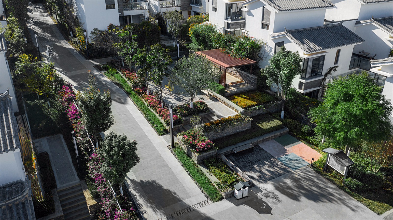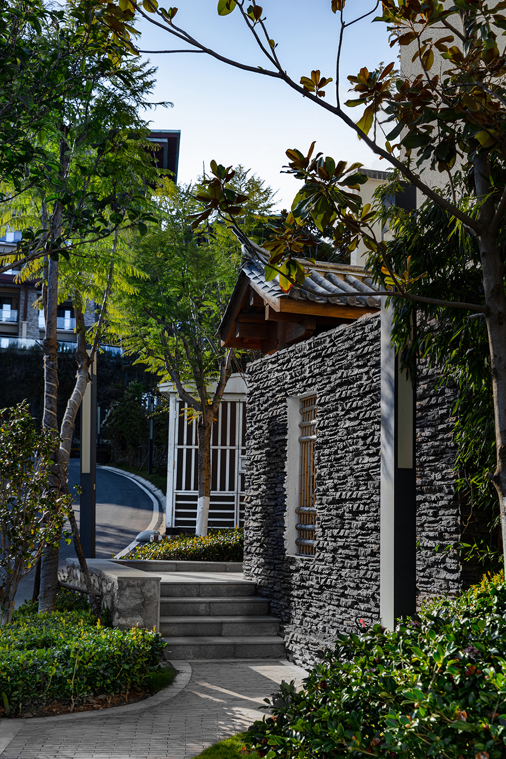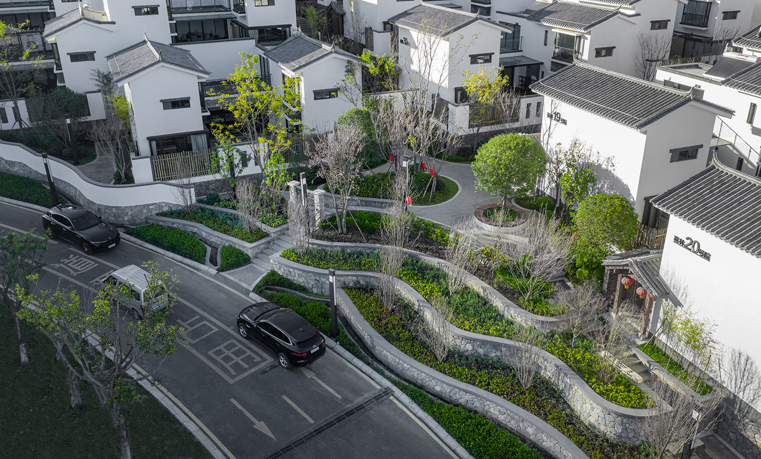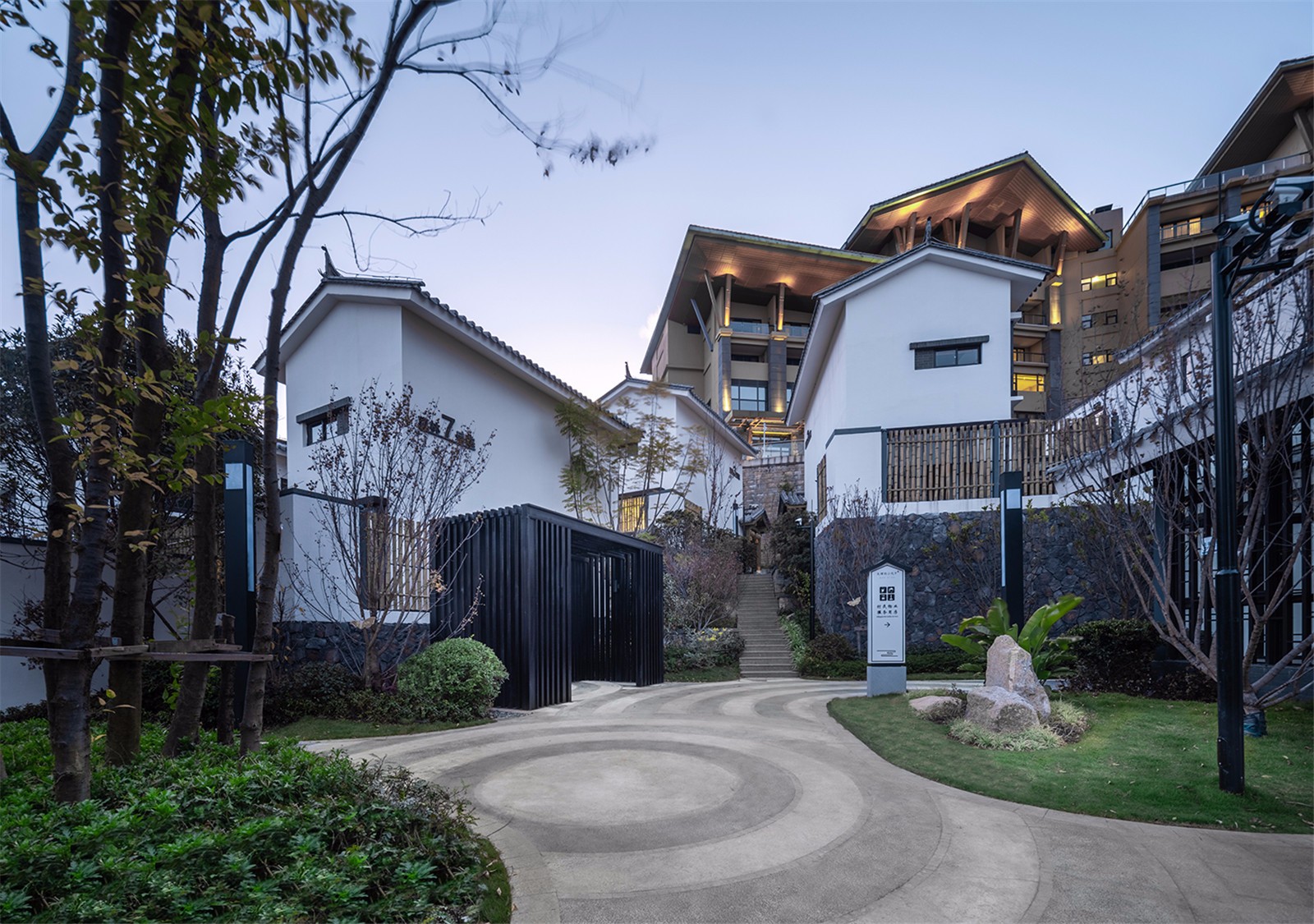 景觀的整體營造中,用曲線打破道路與建筑直線上的無趣和直白,讓景觀與自然環(huán)境融為一體,讓蒼山洱海的“風花雪月”能在當代設計語言的推動下變得更加日常。