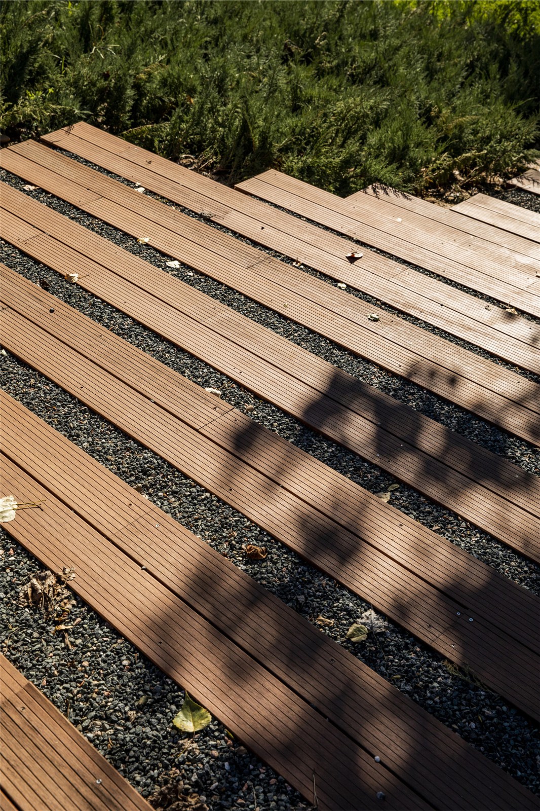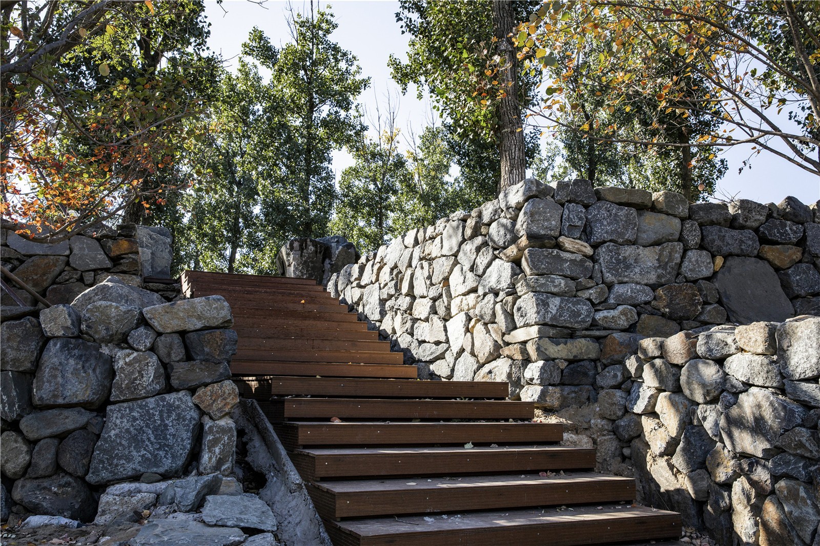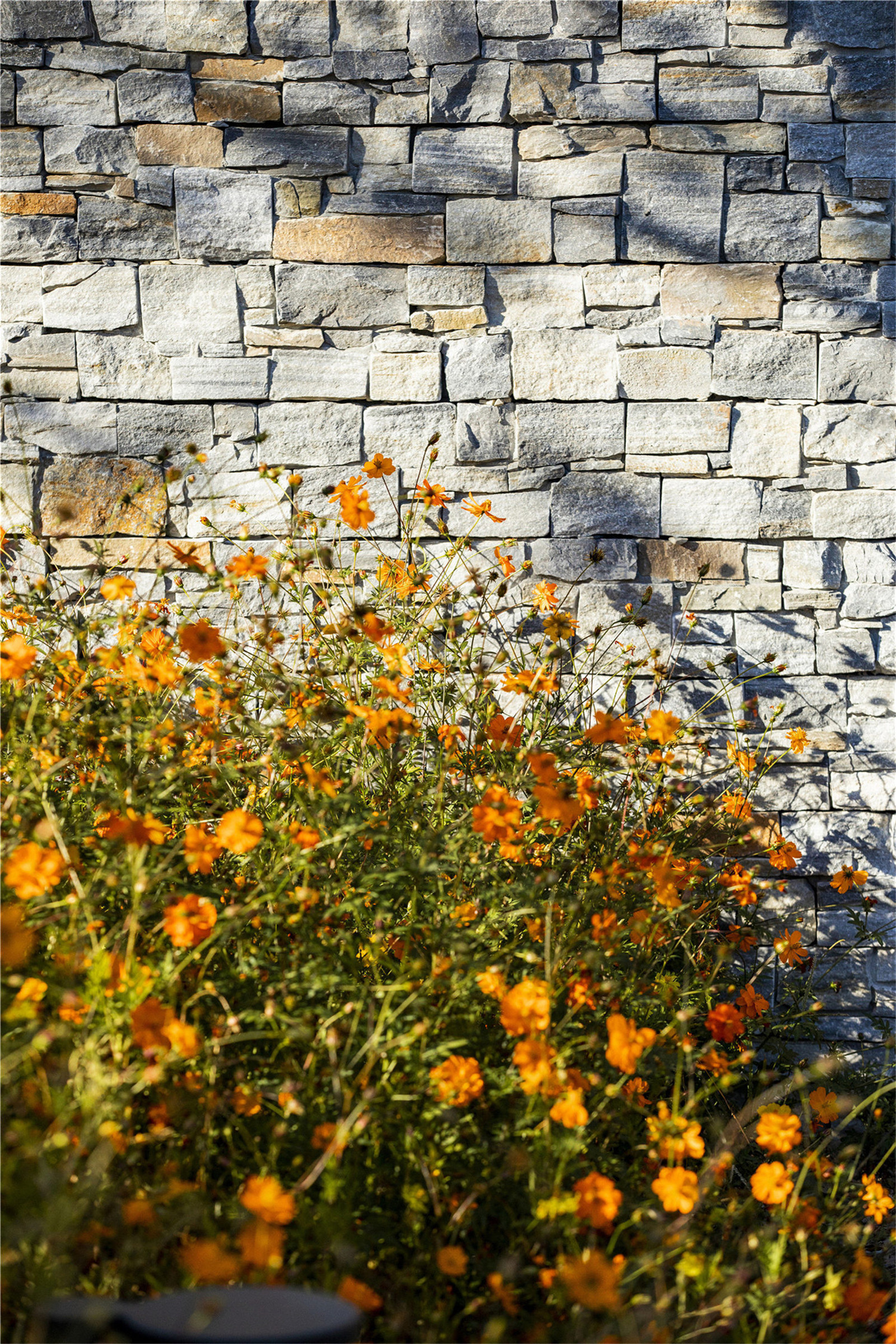 同時(shí),在種植層面,設(shè)計(jì)基本保留原有植物,補(bǔ)植適量喬灌木,大面積播種地被層,包括黃秋英、白三葉等。由此,野趣的山居體驗(yàn)在環(huán)境、材料、植物等要素的共同融合中滋生,每一個(gè)漫步農(nóng)莊的人都能遠(yuǎn)離喧囂,親近自然,都能感受到這份安定從容。