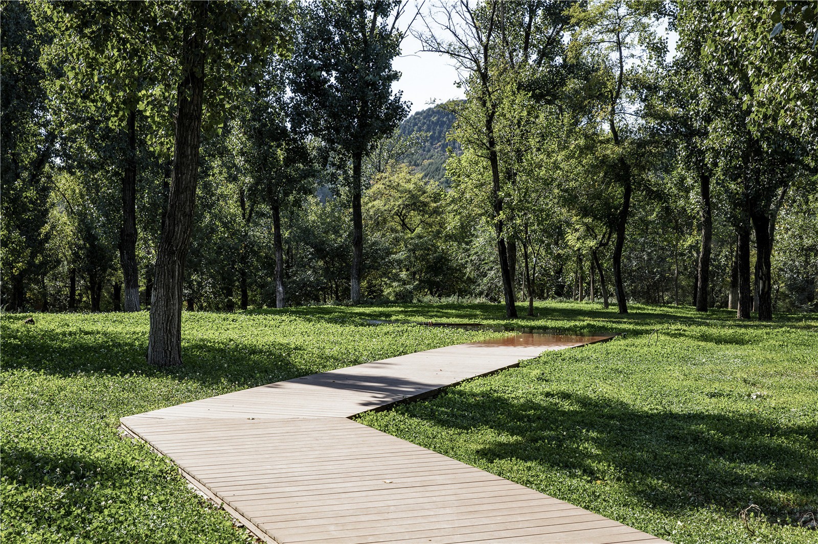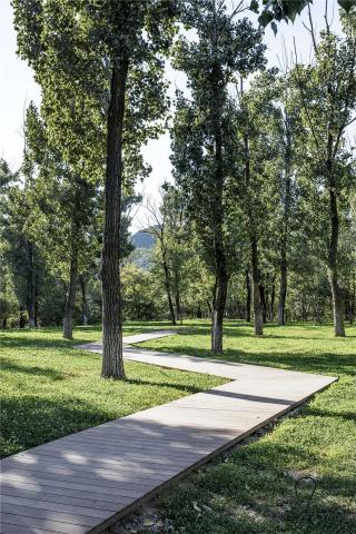 溪山悅音樂(lè)農(nóng)莊位于北京市密云區(qū)白河?xùn)|畔,在土地成為稀缺資源的當(dāng)代,濕地與林業(yè)用地的特殊屬性使這里成為了城市圈難得的山林綠洲。通過(guò)充分保留原有的場(chǎng)地環(huán)境與特色,設(shè)計(jì)以低影響、輕介入的手法打造沉浸式山居體驗(yàn),讓生活融于自然。