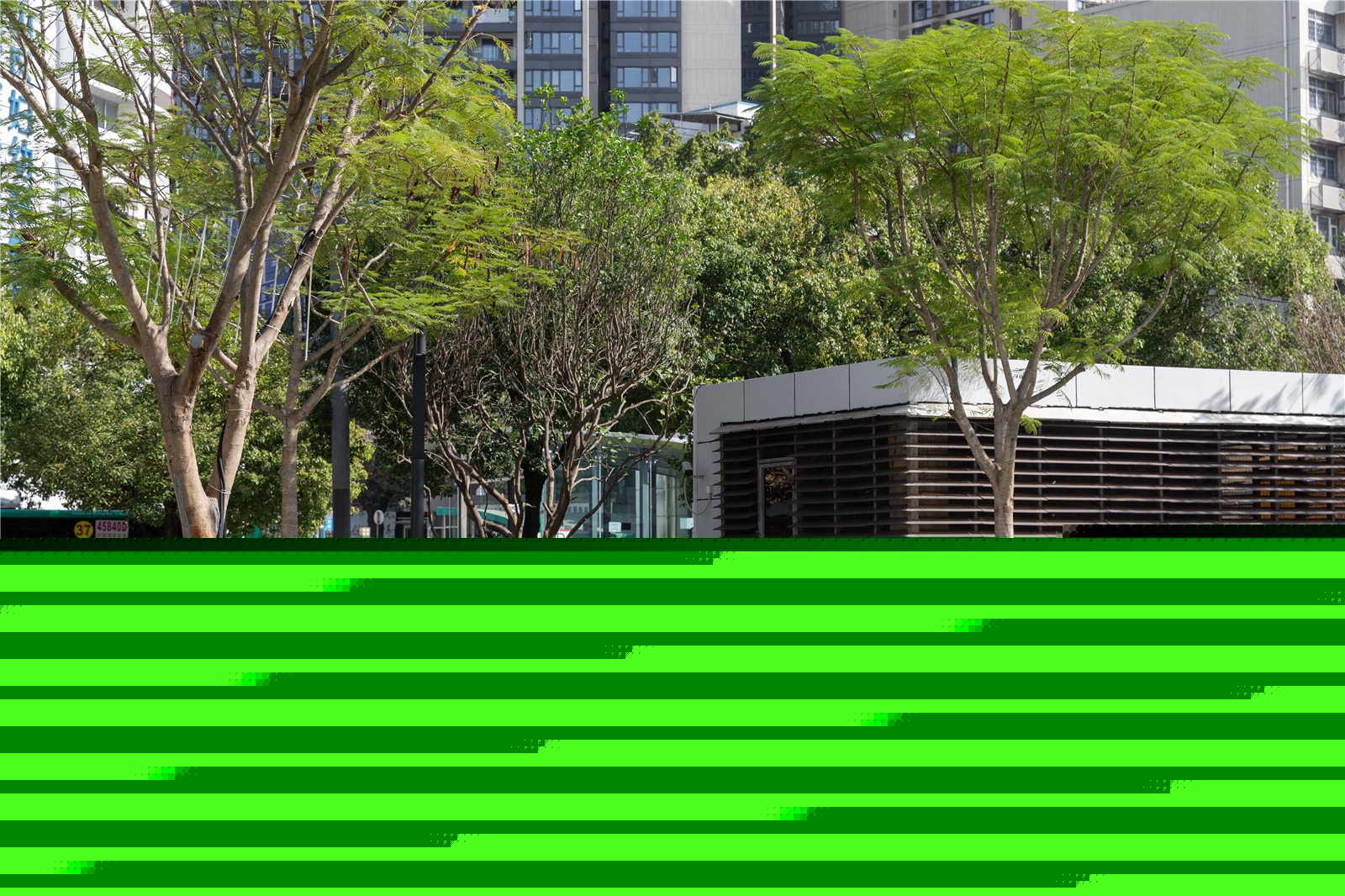 地鐵風井側面的細節(jié),來自魚群肌理的設計語言,訴說著這片場地作為蛇口漁村的歷史記憶。輕質(zhì)鋁扣板與豐滿的垂直綠化也創(chuàng)造了柔軟的城市邊界,為城市界面提供一抹亮麗的綠色。