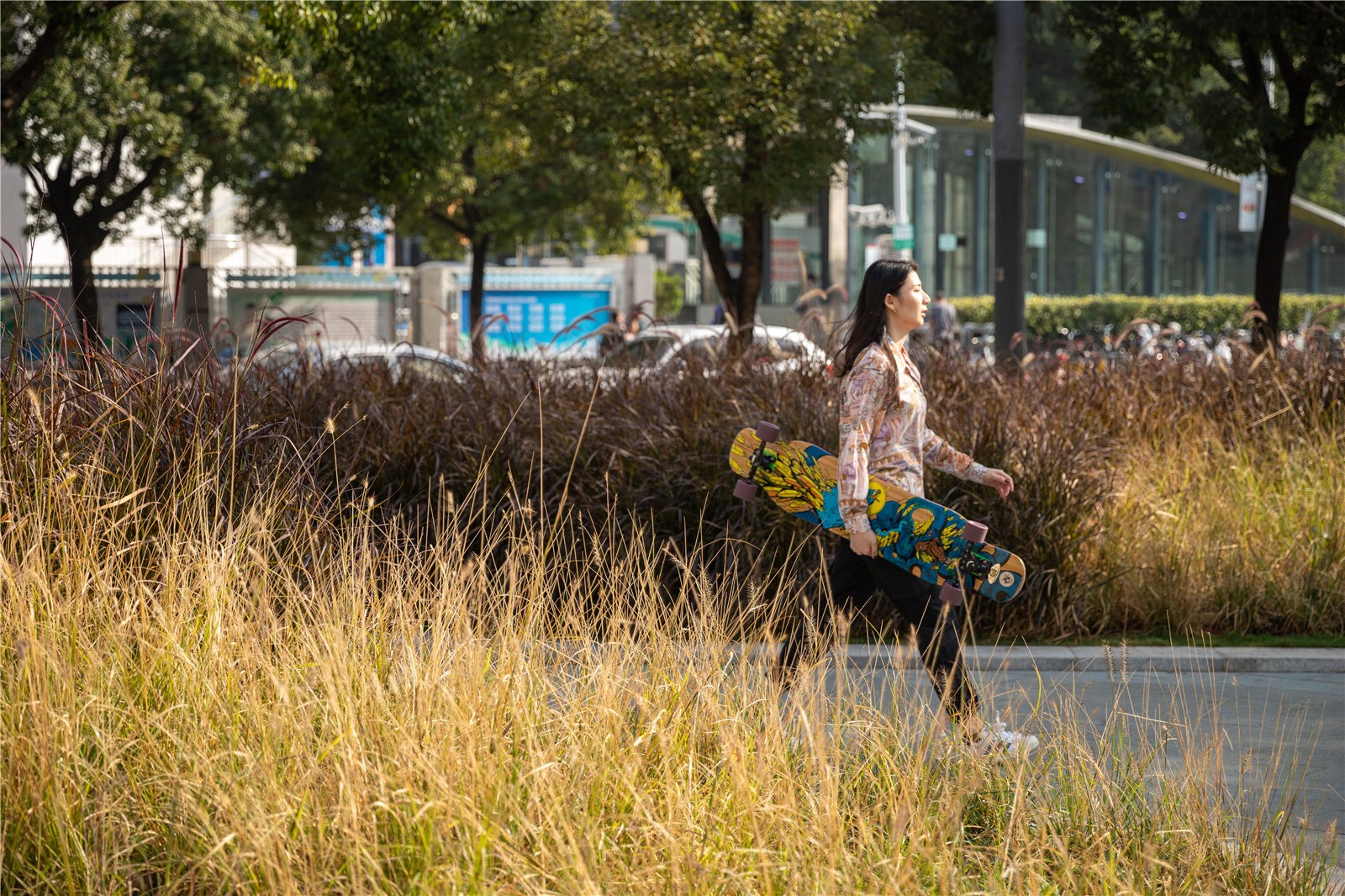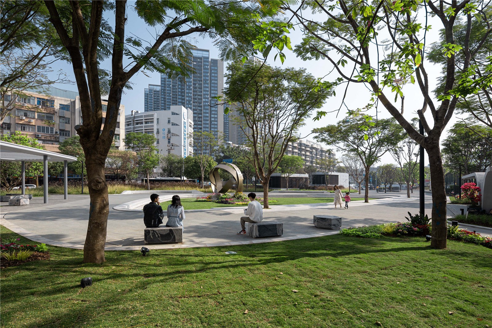 城市因為與人產(chǎn)生了各種各樣的互動,也被人賦予了情感,開放的空間更具有包容性。公園有5個出入口,場地仿佛以一種邀請的姿態(tài),邀請每一個人進入空間,分享城市空間情緒。