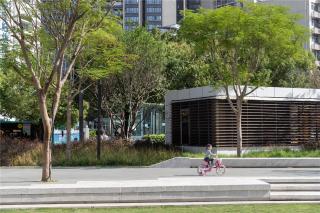 位于公園中央的下沉空間,是周圍稠密擁擠環(huán)境下的一方呼吸之地,場地以化繁入簡的設計手法解決的地鐵上蓋復雜的荷載、管線設備等問題,還給周邊一個整飭大方的社區(qū)空間。