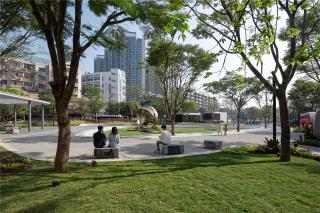 街角的公園,碩大的城市。每一個初來乍到的異鄉(xiāng)人都會深切需要那種發(fā)指內(nèi)心的認同感。這個小小的社區(qū)公園不僅給周邊居民的生活帶來積極的影響,也成為居住在附近的奧雅設計首席設計師李寶章先生的日常打卡點:“我就在這里工作,我下班走到東角頭再走回來,正好一萬步,我管它叫我的一萬步公園?!?/p>