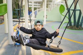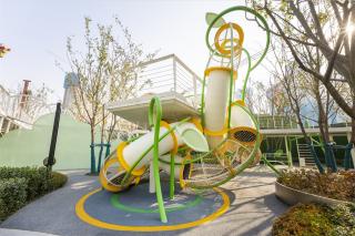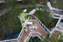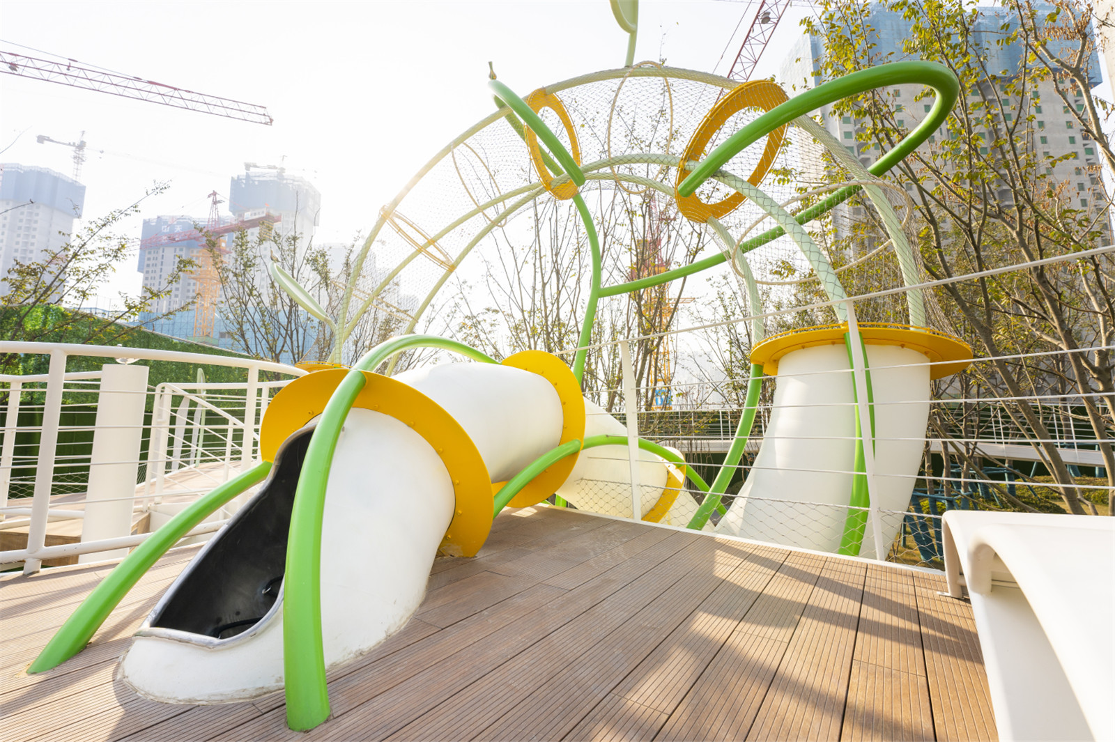 旅途始于魔藤,也終于魔藤。在云橋的盡頭,小朋友們可以乘著魔藤順滑而下,到達(dá)橋下空間。橋下娛樂空間同樣開闊精彩,秋千、躺床、攀爬架、各式閑適休憩娛樂設(shè)備,為小朋友們提供了更多選擇。