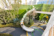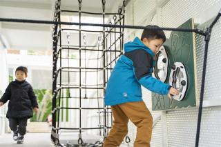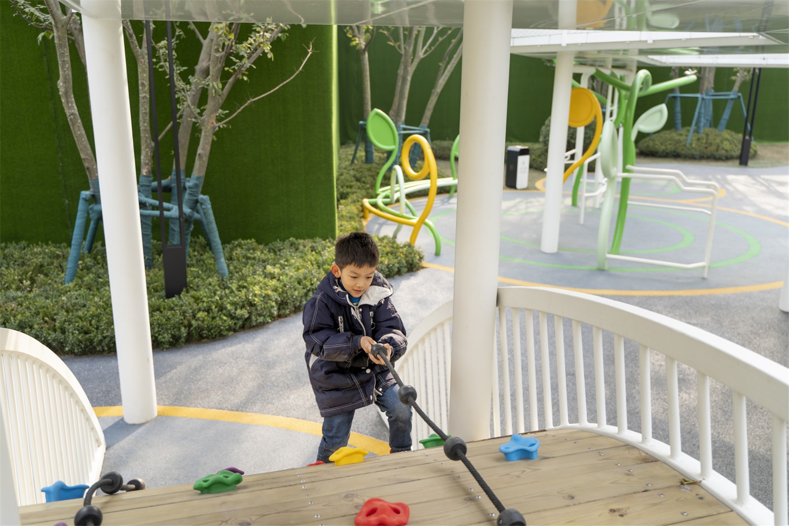 幼兒還可以在家長的陪同下,通過更便于通行的階梯通道進(jìn)行上下攀爬。