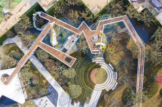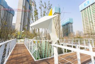 項目位于西安,是一個沉浸式互動會客空間+多元化興趣聚落。項目中搭建的景觀棧道全長113米,除了營造純美的意境之外,作為園區(qū)的紐帶云橋還將園區(qū)內(nèi)的云端童趣、林中看護(hù)等各個功能區(qū)串聯(lián)起來,打造出了一個全齡共享的休閑娛樂場所和沉浸式互動空間,滿足了全齡段的休閑需求。