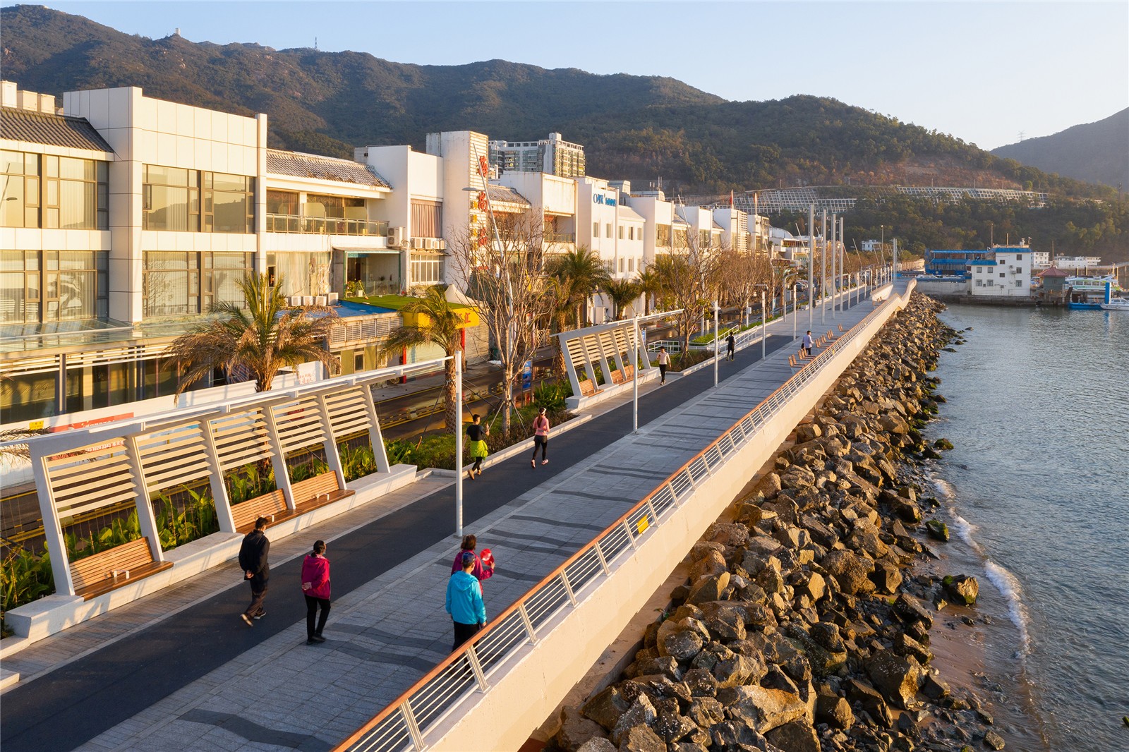The implemented part has a length of 11km. Tourist spots with spectacular sceneries, including Dameisha, Xiaomeisha and Beizaijiao, are connected by the new boardwalk. The leisure path, with tourist and sports elements, also extends to the Seafood Street, which is a promenade along local commercial blocks.
