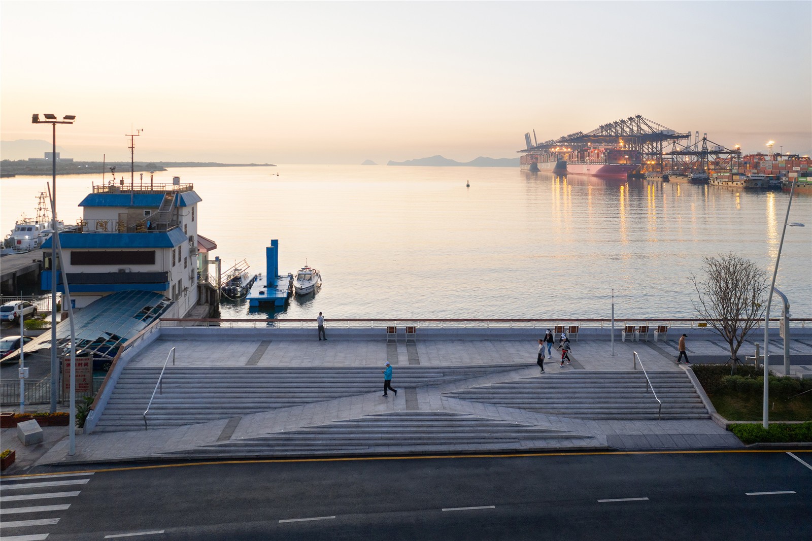 The Seafood Street Section of the Waterfront Boardwalk situates at one of the most prosperous commercial and retail areas in Yantian District. The promenade along Seafood Street was devastated during the hit of Typhoon Mangkhut. The design team treated the reconstruction project as an opportunity to reshape Yantian District. Seafood Street Section is a recreational promenade with bicycle trail and walkway. Part of the wider section is sunken for a closer experience with the coast. The bottom part of the balustrade is made up of prefabricated concrete modules, while the top part comprises stainless steel and treated wood handrail. At the other side of the promenade, retaining wall with prefabricated concrete modules echoes with the dynamic waterfront living. The feature high-chairs provide the best location for visitors to enjoy the marvelous views of Yantian Port. The tropical style planting design is reflected by the row of palm trees along the path. The overall design of the Seafood Street Section of the Waterfront Boardwalk shapes itself into a popular destination for citizens to relax and play.