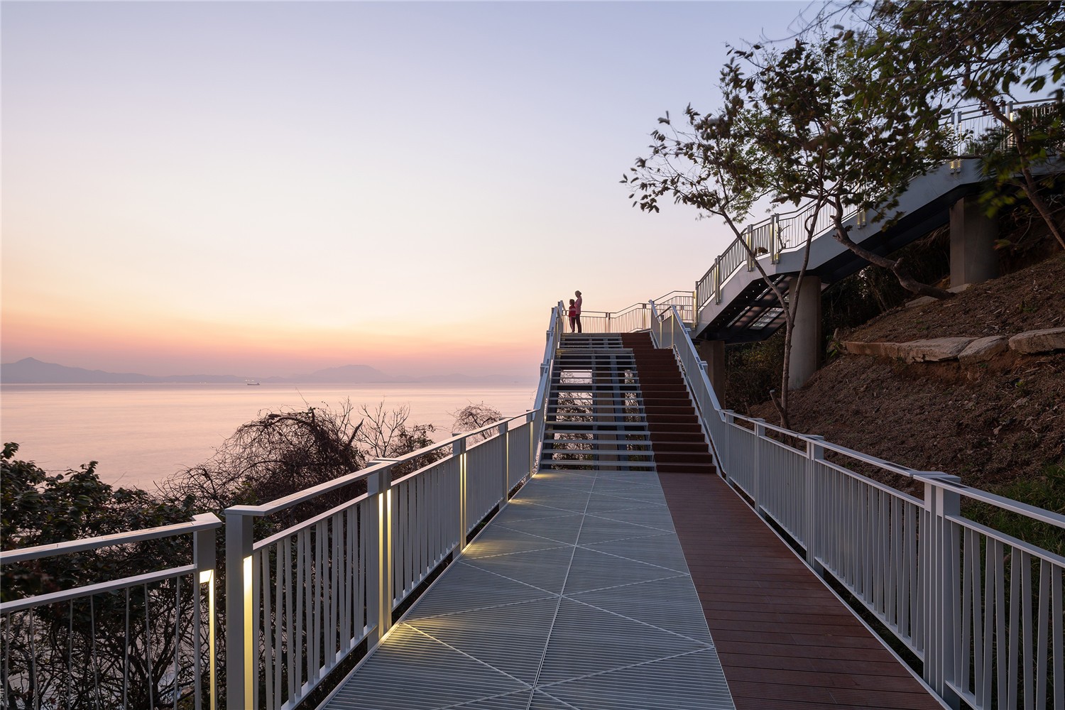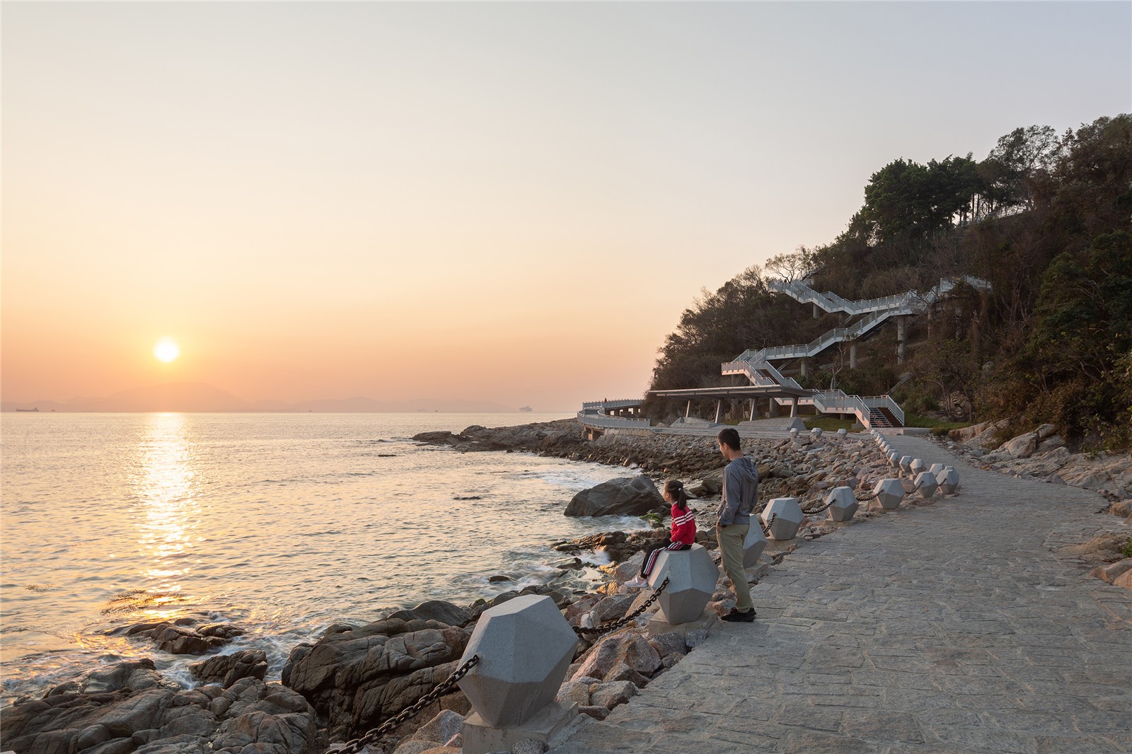 已實施的部分總長約11公里,重建的棧道重新連接了大小梅沙、揹仔角等壯麗自然風光的景區(qū),并將觀光、健身的游憩步道延伸到了海鮮街這樣的海濱商業(yè)街區(qū)。新的棧道采用了更安全合理的選線,更適應(yīng)氣候的構(gòu)造細節(jié),為市民提供了更具容納性和活動性的開放空間。借助重建的機會,海濱棧道將原本割裂的城市空間與自然景區(qū)緊密的聯(lián)系在一起,重新定義了豐富的人文生活與壯闊的自然景觀之間的關(guān)系,帶給城市更具活力的濱海岸線。