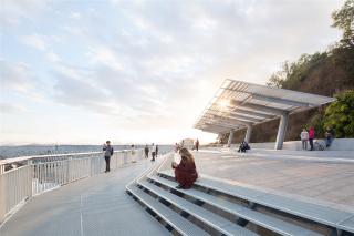 ▲ 大梅沙驛站圖書館的屋頂設(shè)有觀景平臺,旅客可以在這里飽覽大鵬灣的壯麗景致