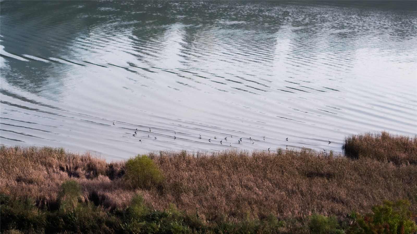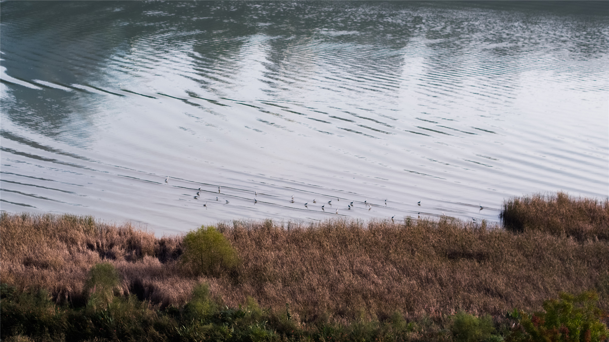 因此,在本項目中,設計對地上和地下空間進行了系統(tǒng)考量。針對地上水岸,通過視覺通廊的打造,在不破壞原生林邊界的前提下,對其適當進行組團化梳理,如適當清理胸徑小于10公分以下的喬木等,從而營造山水園林的藝術效果。針對地下水岸,則通過人工手段來阻斷菖蒲、巴茅、蘆葦?shù)戎参锔档臒o限制延展,令水道進入灘涂地塊,從而變?yōu)┩繛闈駦u,改善鳥類的覓食空間和大型鳥類的棲息之地。