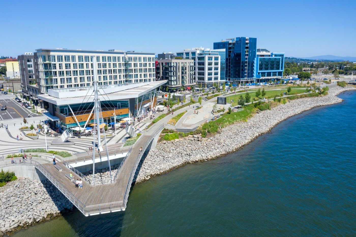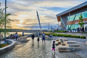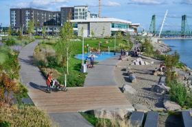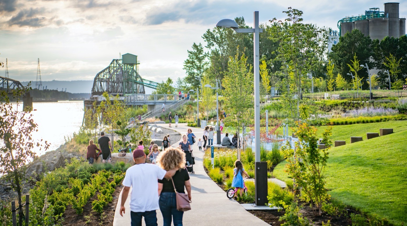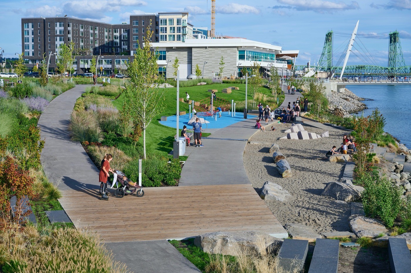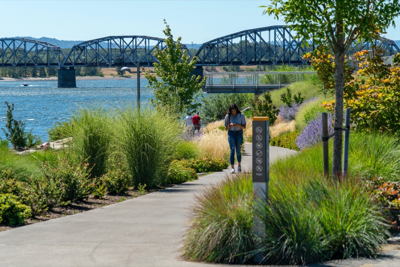 On the north bank of the Columbia River, Vancouver, WA, is Vancouver’s newest waterfront development that brings the downtown to the river’s edge. In partnership with the City, Gramor, and a multi-disciplinary team, PWL Partnership created the detailed design for the public realm, parks, and open space plan along with the detailed waterfront park design for this 29-acre/12-hectare project site. This new mixed-neighbourhood includes residential, retail, commercial, civic, park spaces, and environmental restoration areas—it makes space for 6,000 new residents and 5,000 office workers.
