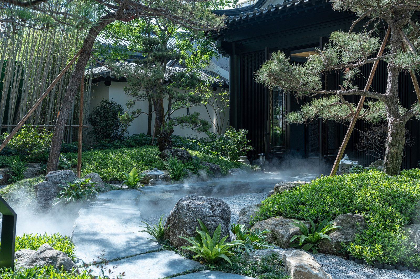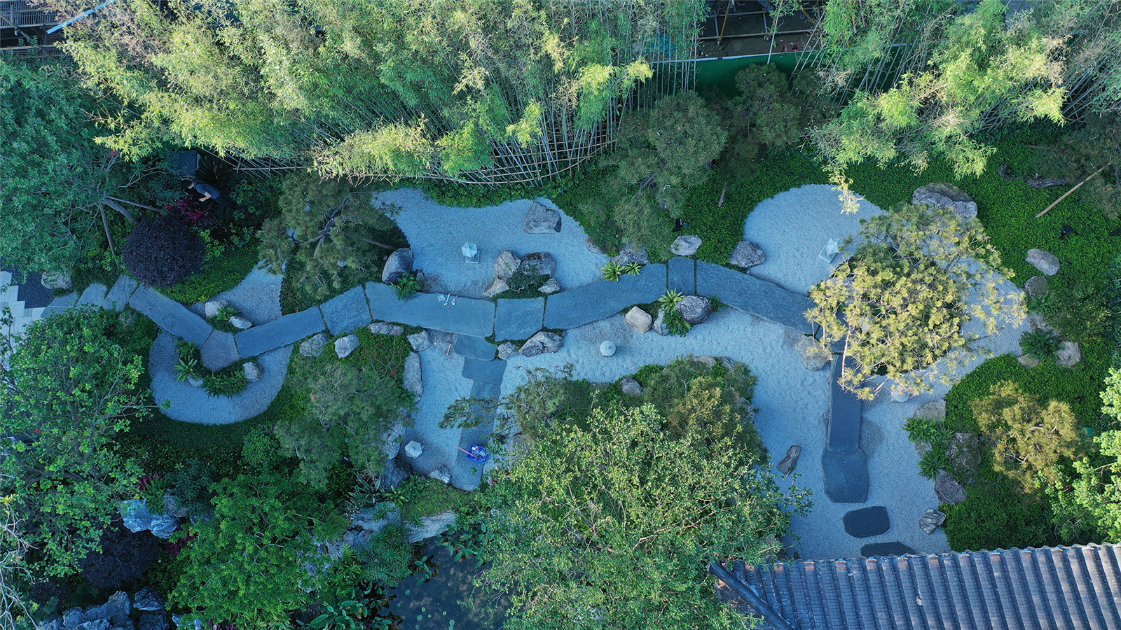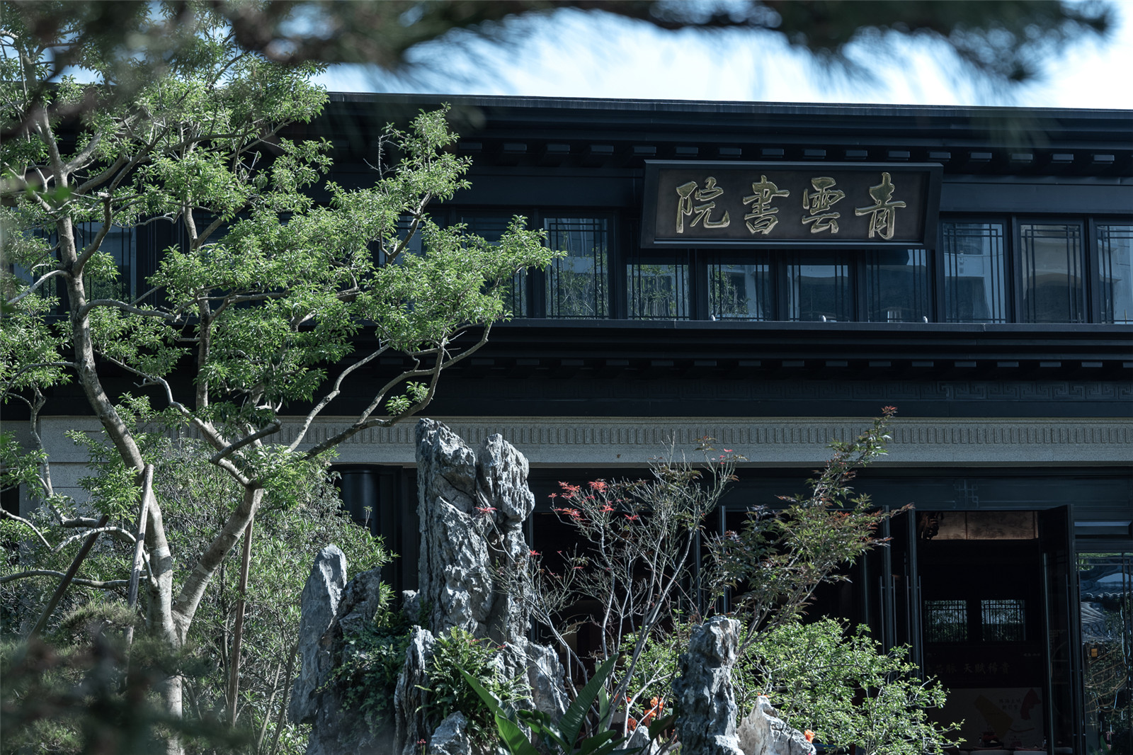 心淘凈塵,無關(guān)世事,禪意書院,浣凈塵心。只憑了了幾筆枯山水的場景呈現(xiàn),東方美學(xué)的自然而樸實(shí)得以再次重拾。人們靜坐于前,如觀世界,聽鳥語蟲鳴、水聲松籟。在這里,天空和樹木,不只是綠色的背景,更像是日常交往的朋友,希望能和這個(gè)空間建立聯(lián)系。