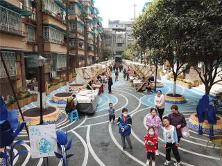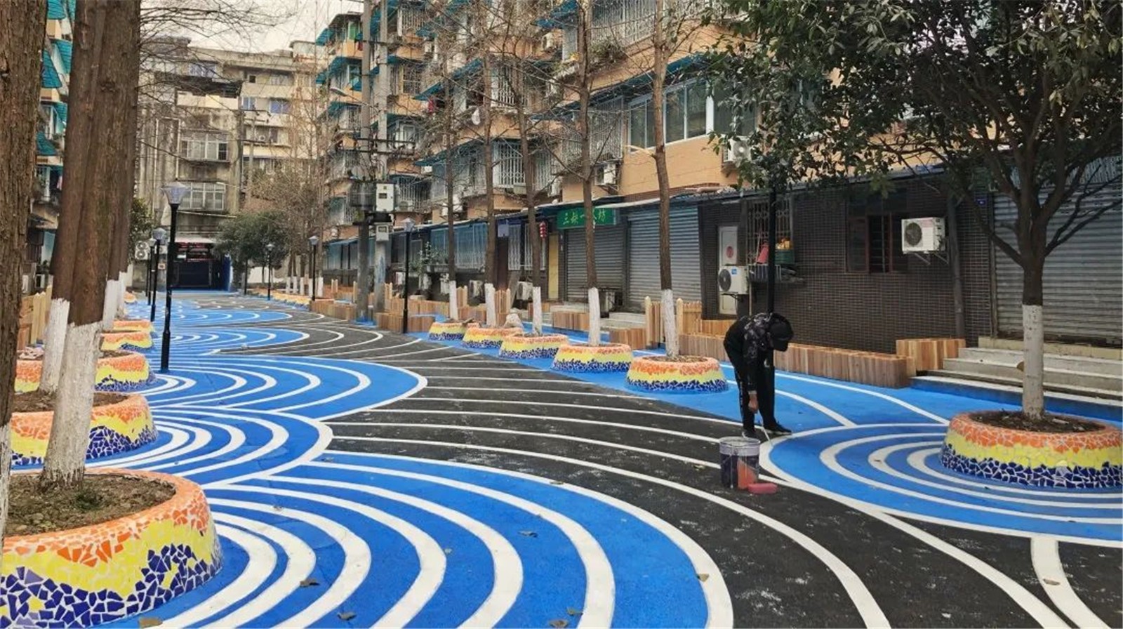 因此,改造后的街道沒有高差,只在地面上涂繪了明快的“永豐藍(lán)”和聲波狀紋理,這種非具象的模糊性設(shè)計(jì)更容易激發(fā)兒童進(jìn)行積極探索,并在主動(dòng)利用場(chǎng)地的過程中產(chǎn)生社交。