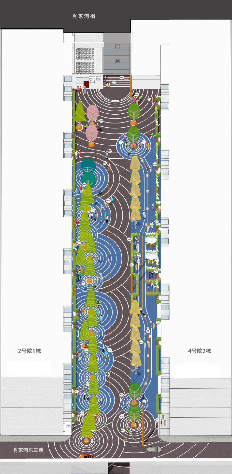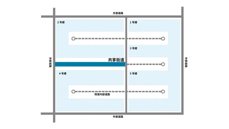 1、兩端開口,連通著城市主路(肖家河街)和院落內(nèi)部,可達(dá)性高;