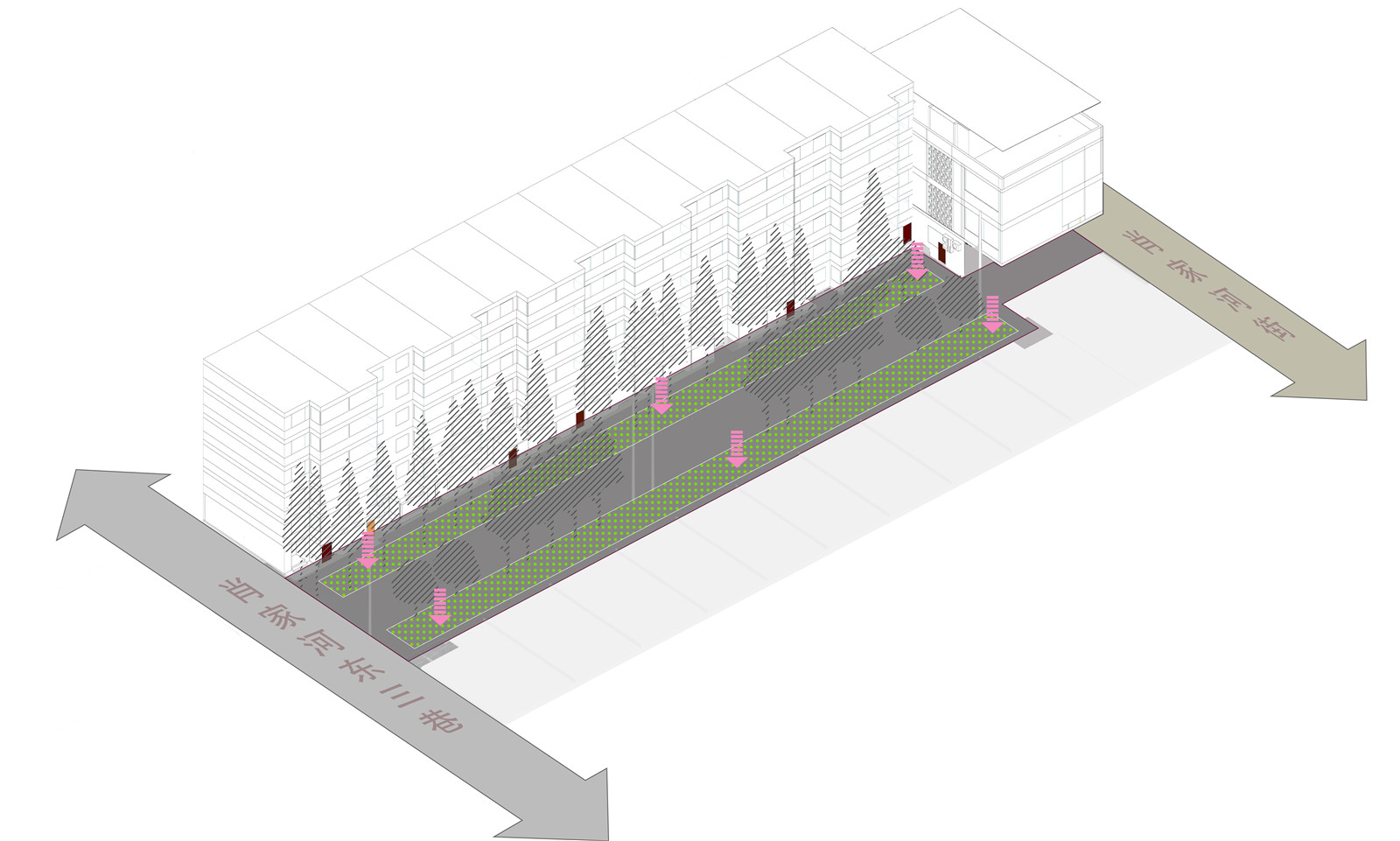 除此之外,街道中目前不可進(jìn)入的綠化帶可以成為各種休閑活動(dòng)的承載場(chǎng)地;同時(shí)周邊緊鄰多所中小學(xué)校,該街道能否為青少年群體提供更多的益處也是研究重點(diǎn)之一。
